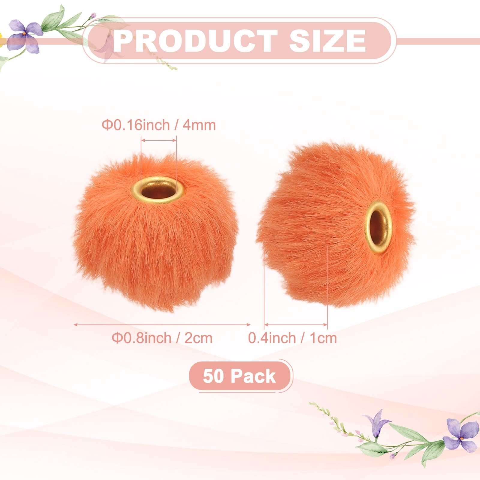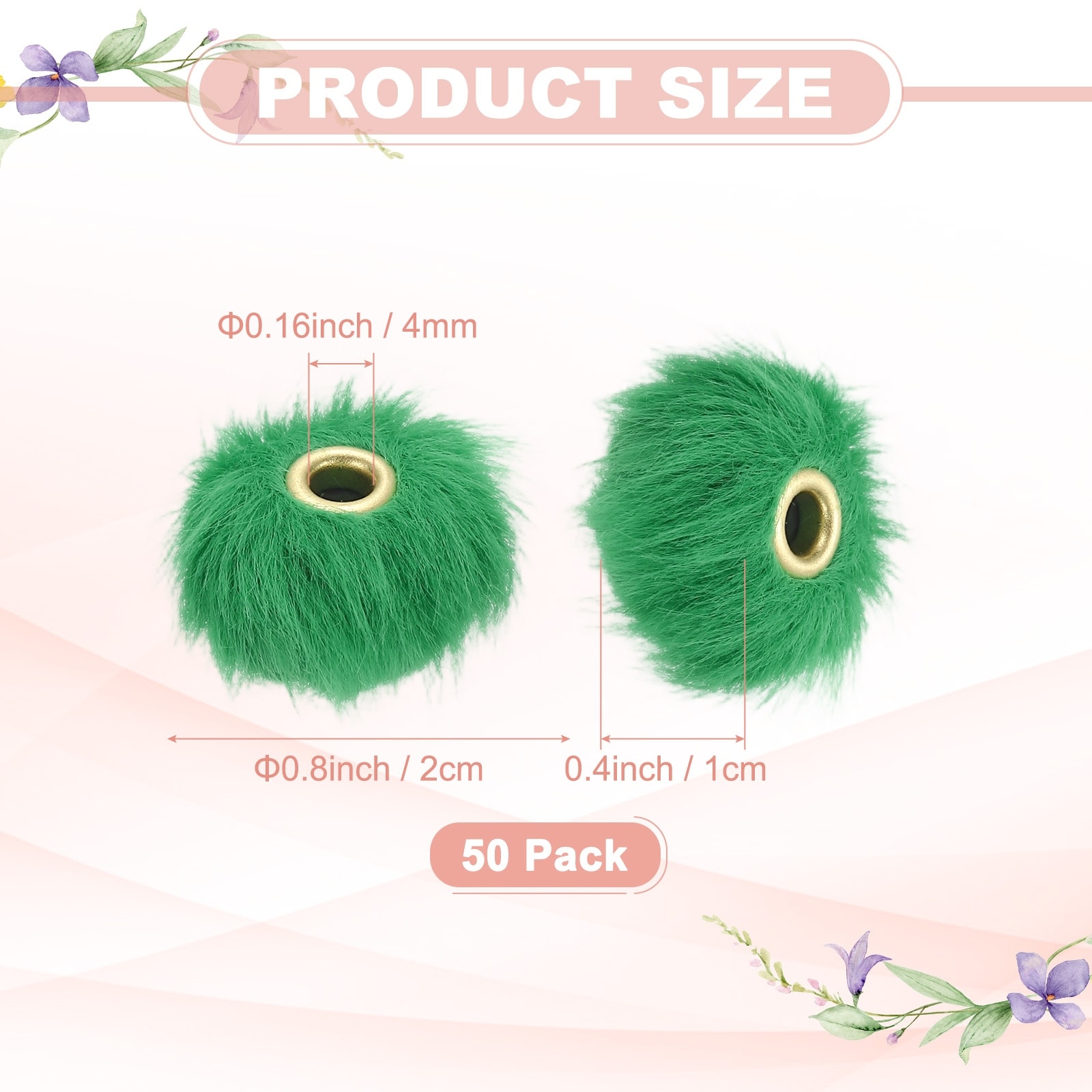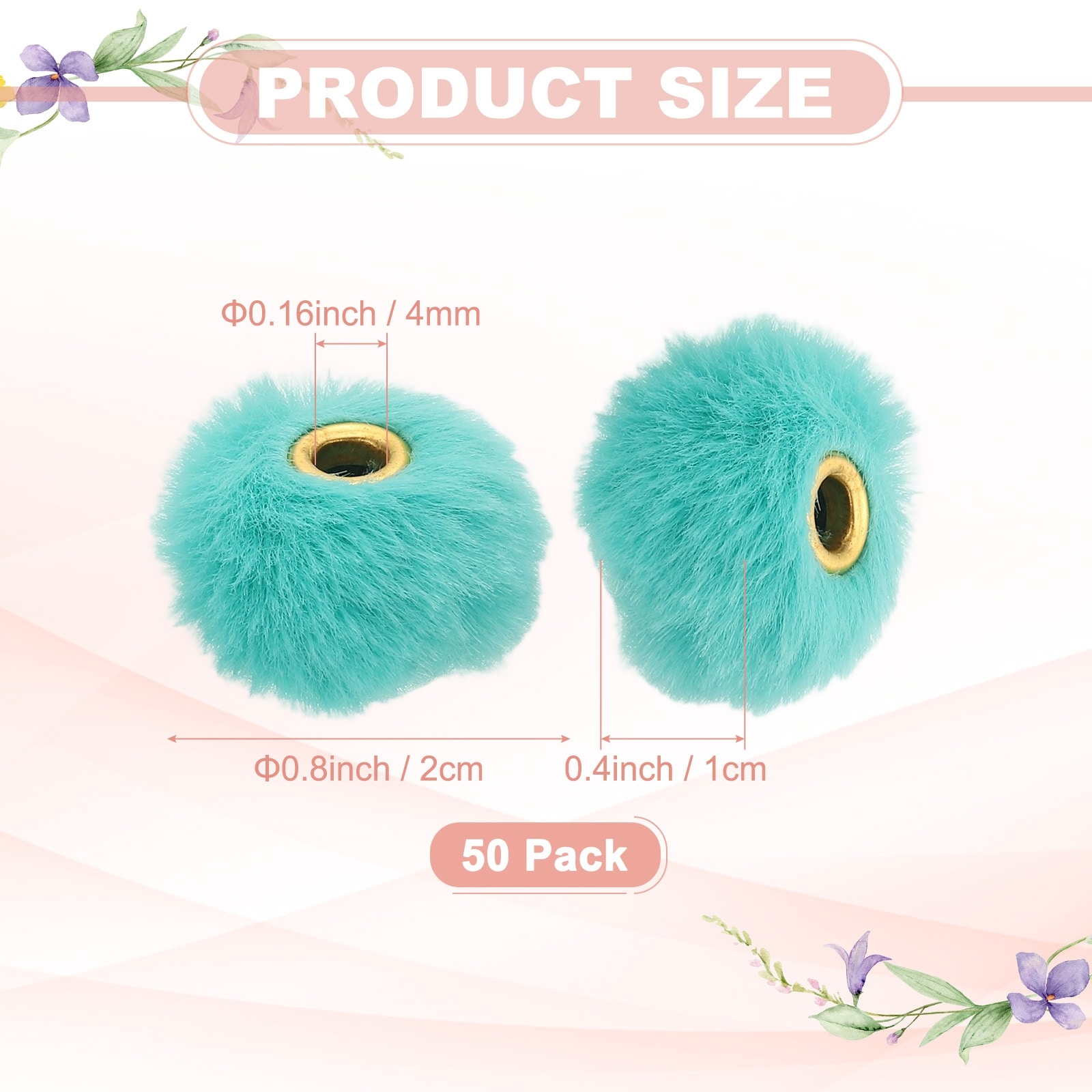 Fluffy Faux Fur Pom Pom Beads, Soft Fuzzy Spacer Bead for DIY Craft/Jewelry Making/Pens - 50 Pcs