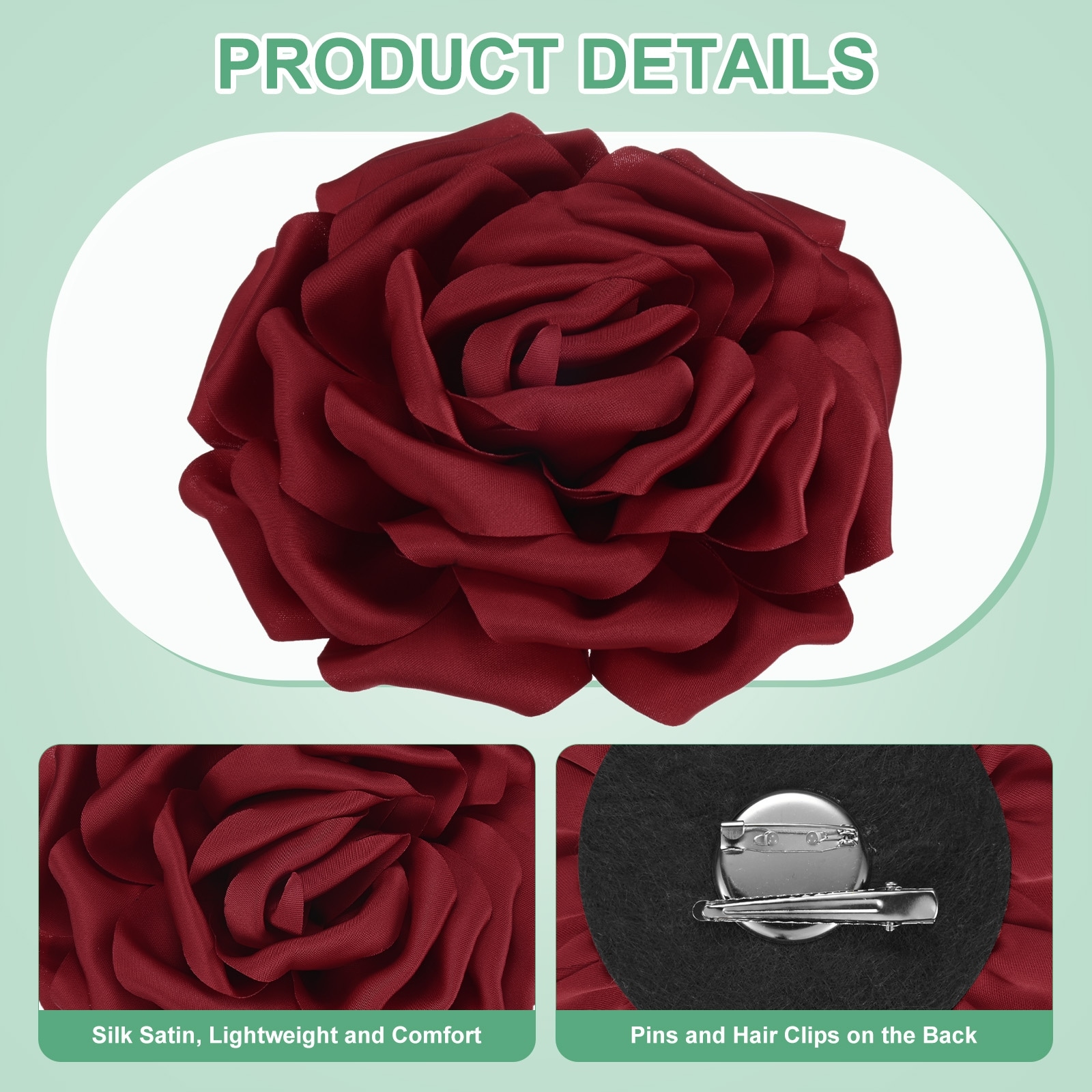 Large Rose Flower Brooches Lapel Pin, Lapel Pins Dainty Satin Fabric Big Camellia Flowers Brooches and Pins for Wedding