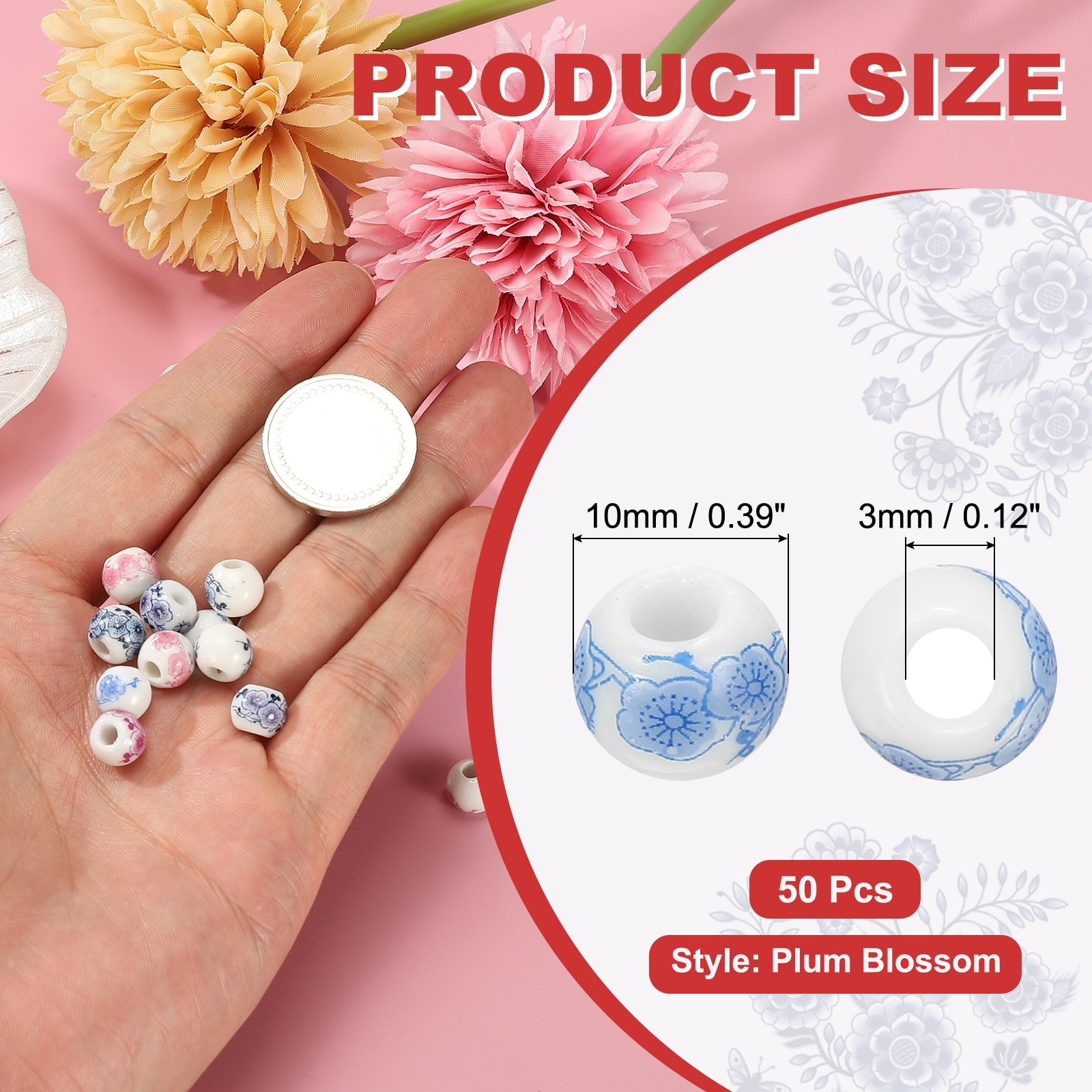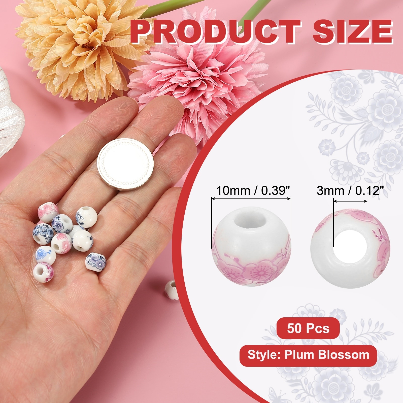 Ceramic Beads for Jewelry Making, Flower Printed Porcelain Beads Handmade Glazing Beading Supplies, Plum Blossom