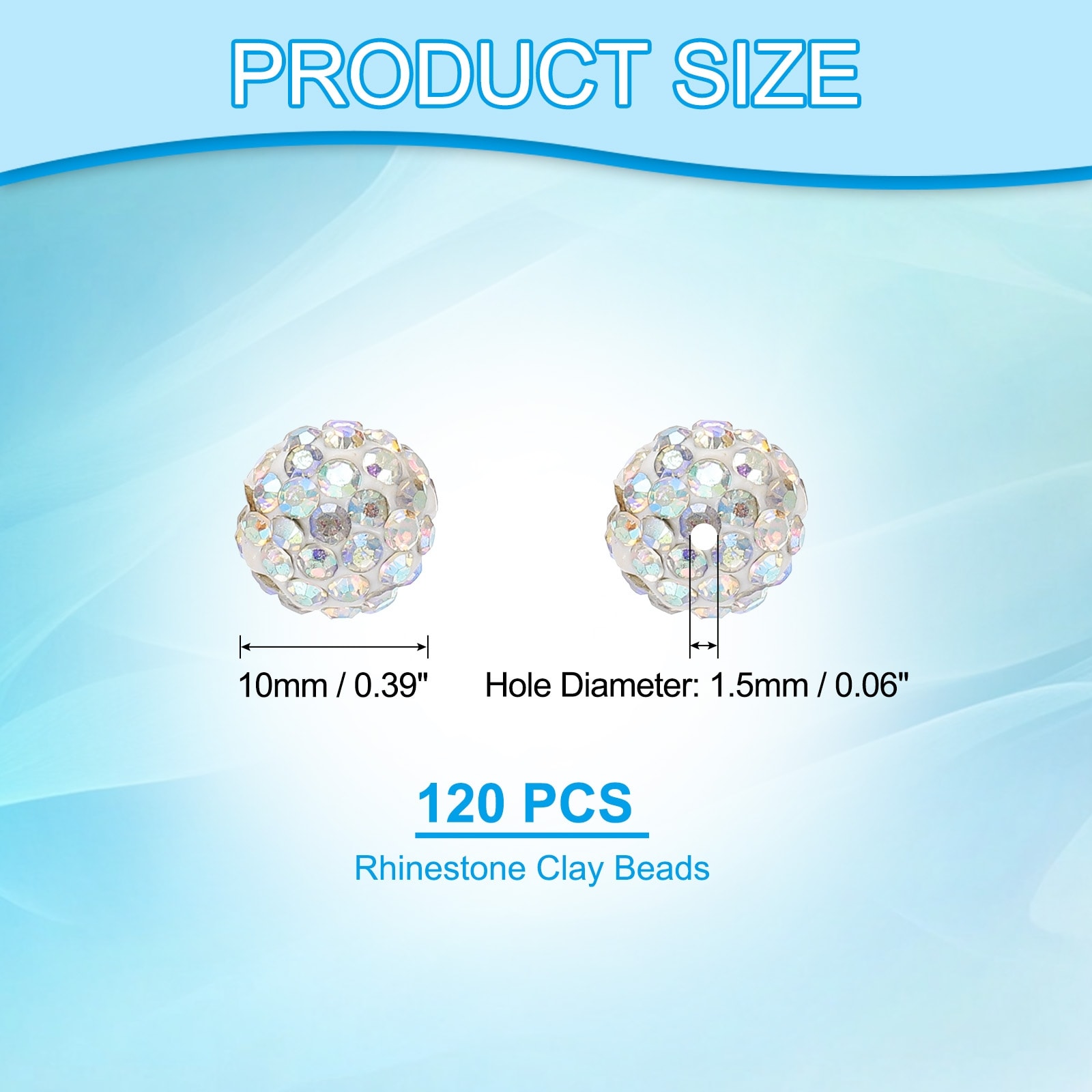 Rhinestone Clay Beads for Jewelry Making, Round Ball Polymer Clay Crystal Charm Beads for Craft Decor - 10mm