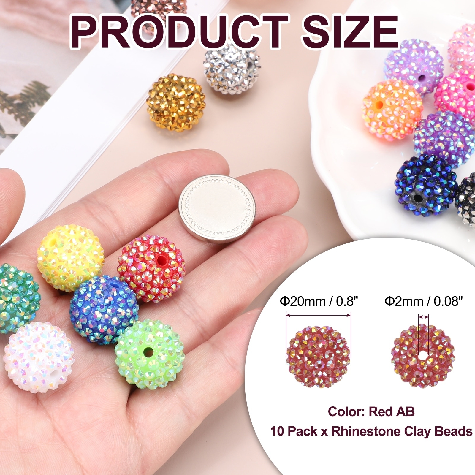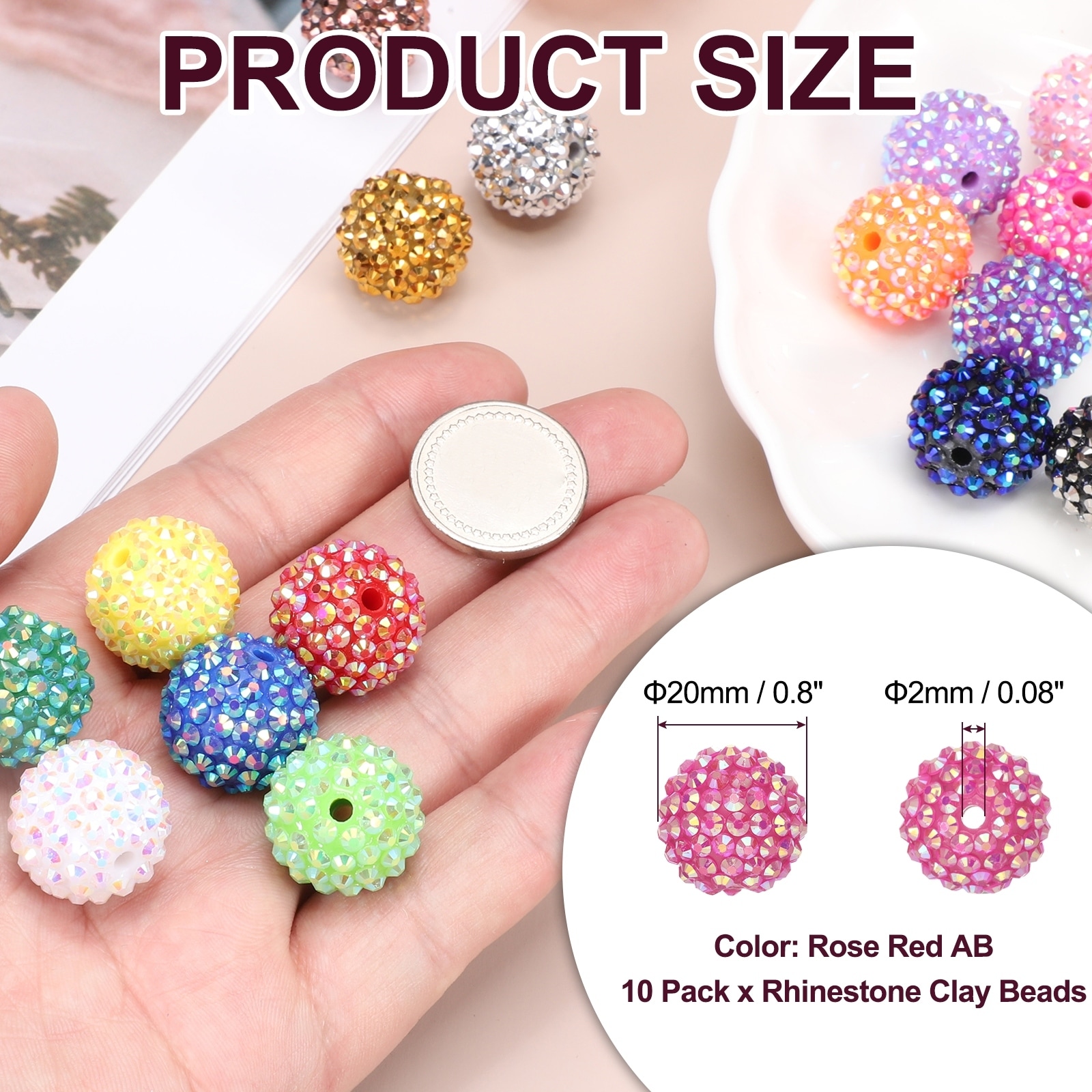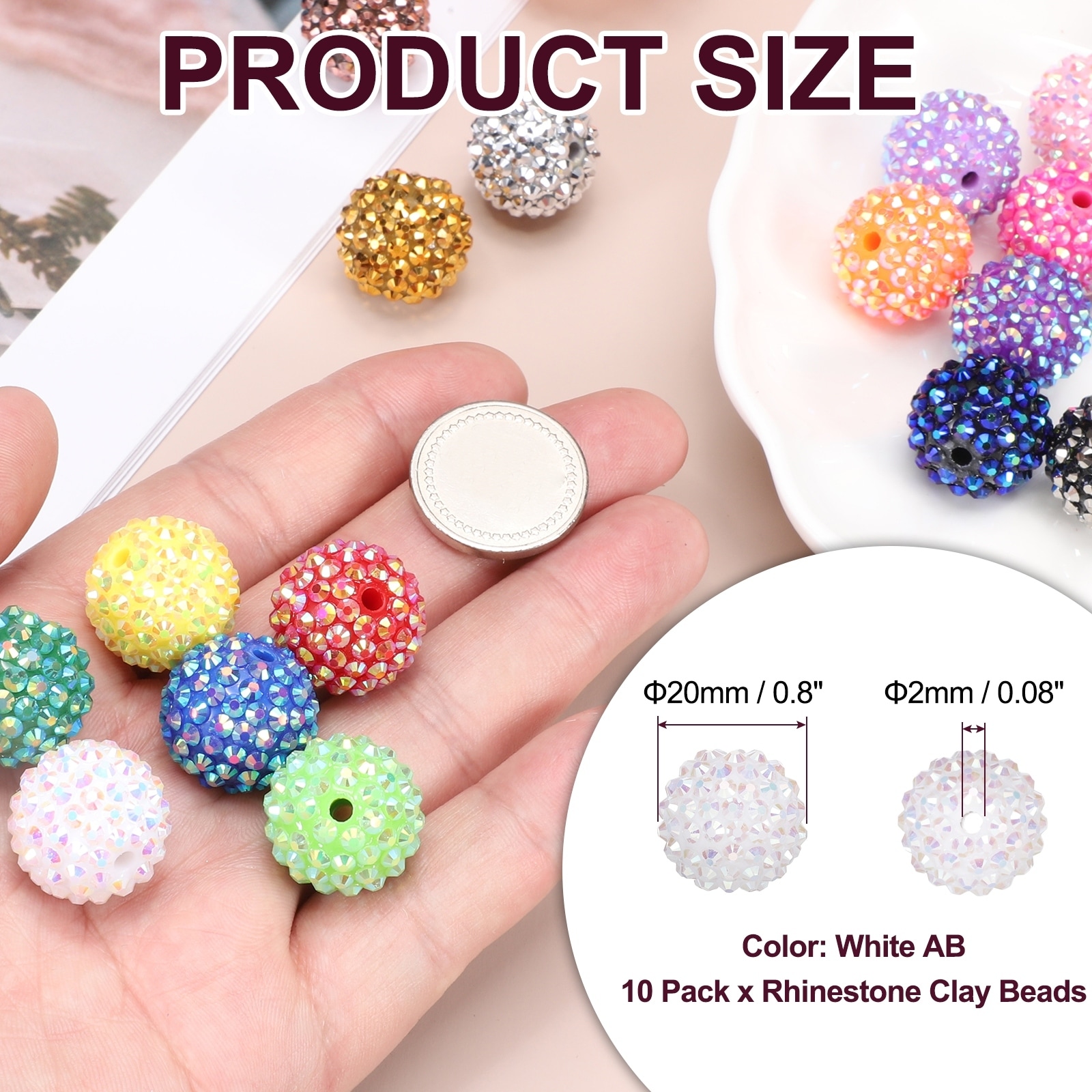Resin Rhinestone Beads for Beadable Pen, Ball Disco Sparkly Chunk Round Bubblegum Beads for Beadable Keychain