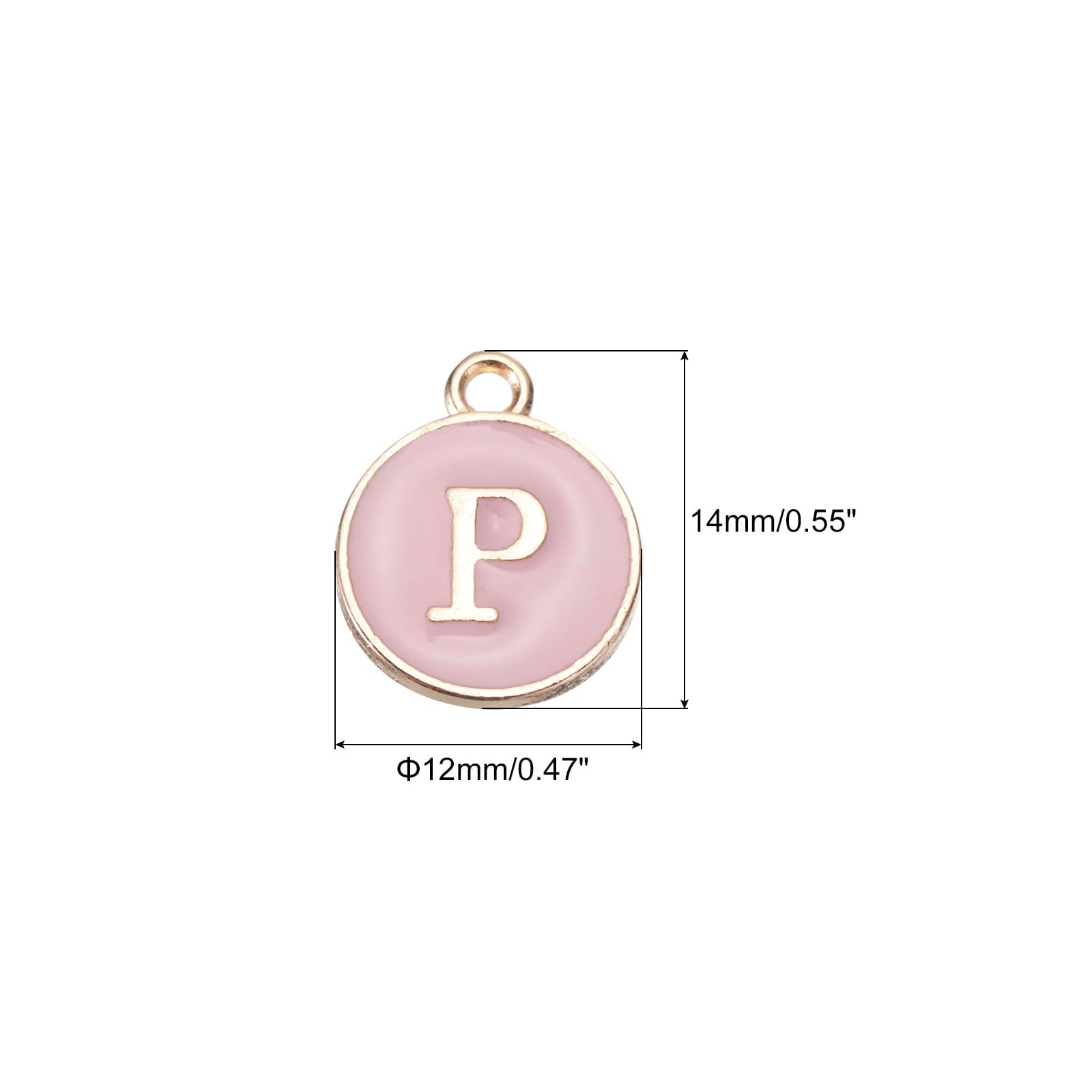 Alphabet Letter Charm Double Sided Enamel Initial Alphabet Pendant, for Necklace Bracelet Earring Making - Pink