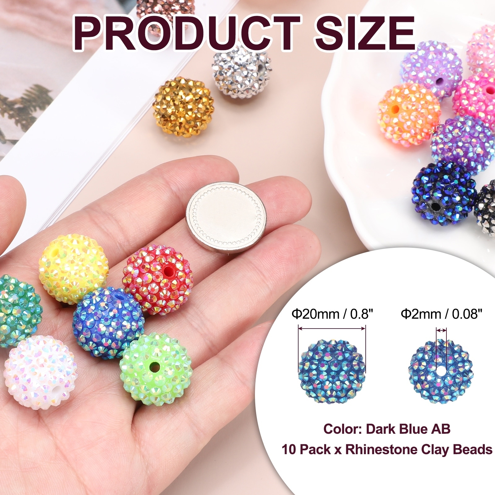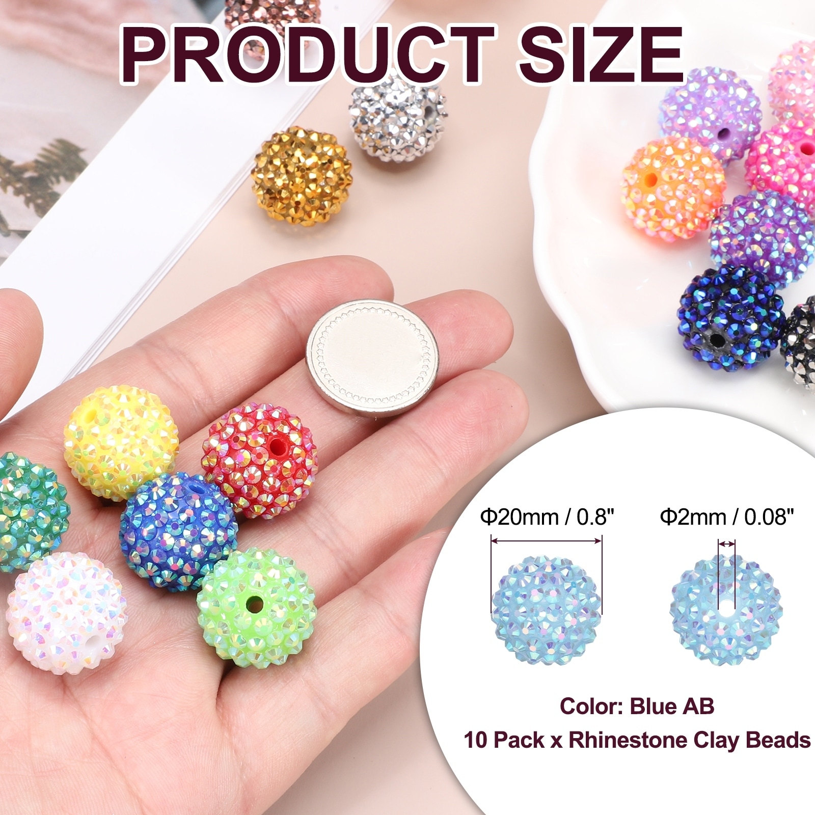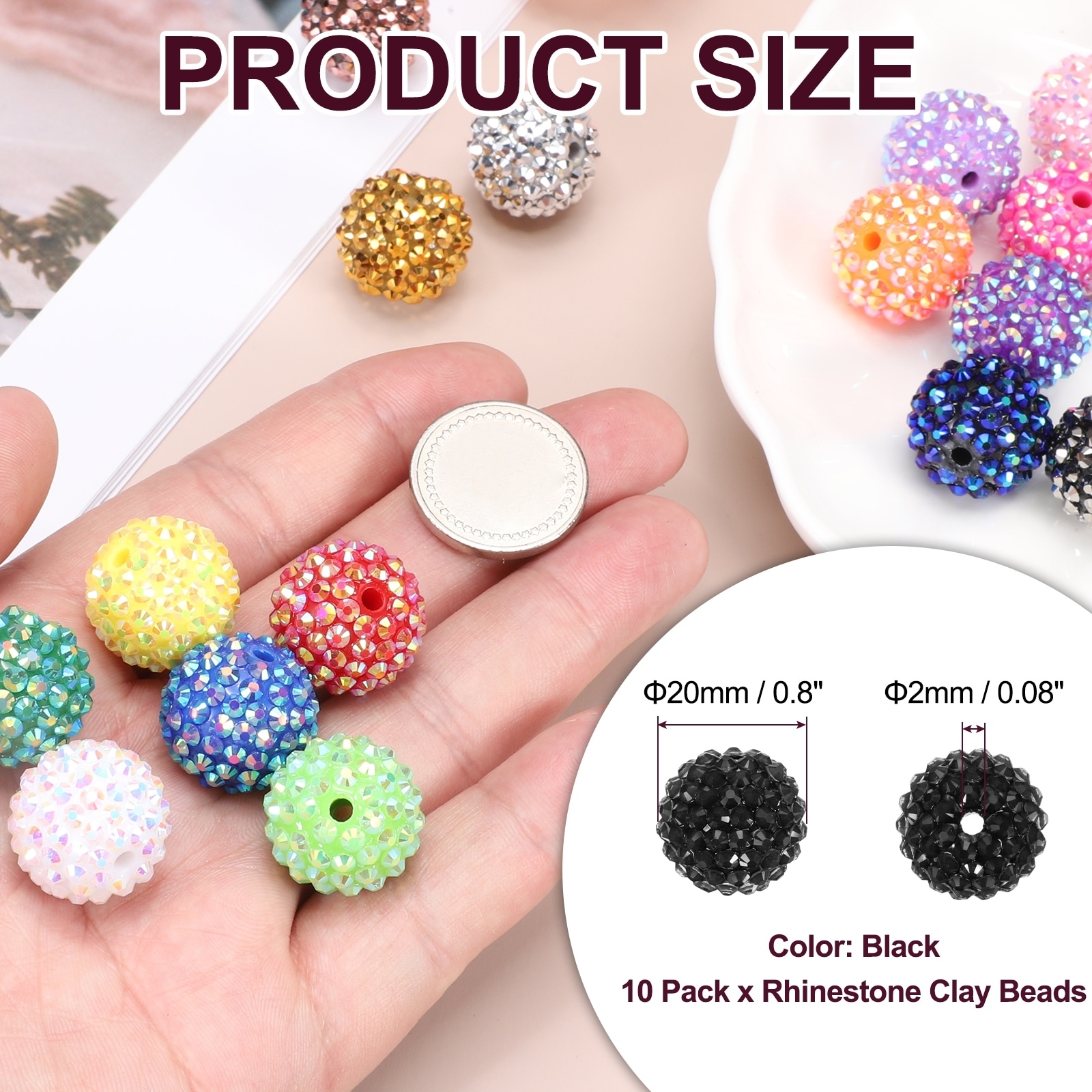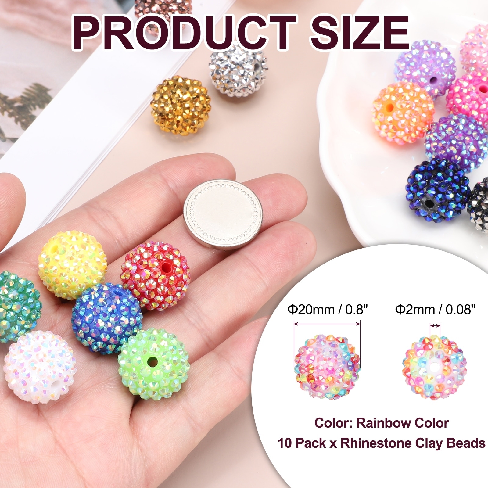 Resin Rhinestone Beads for Beadable Pen, Ball Disco Sparkly Chunk Round Bubblegum Beads for Beadable Keychain