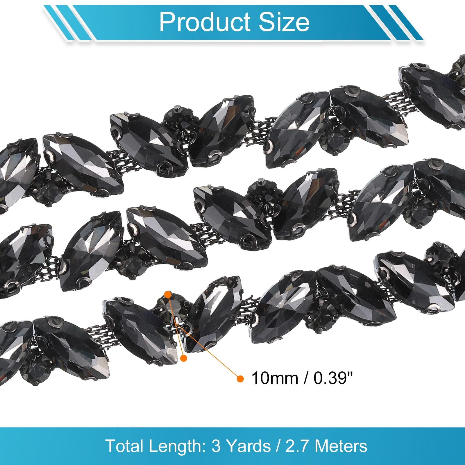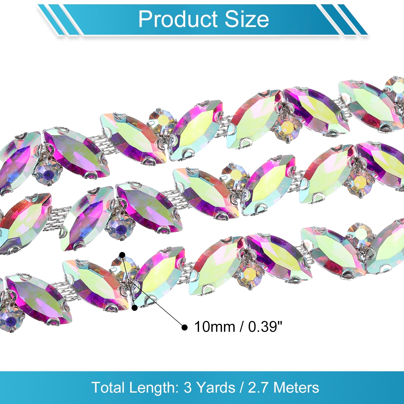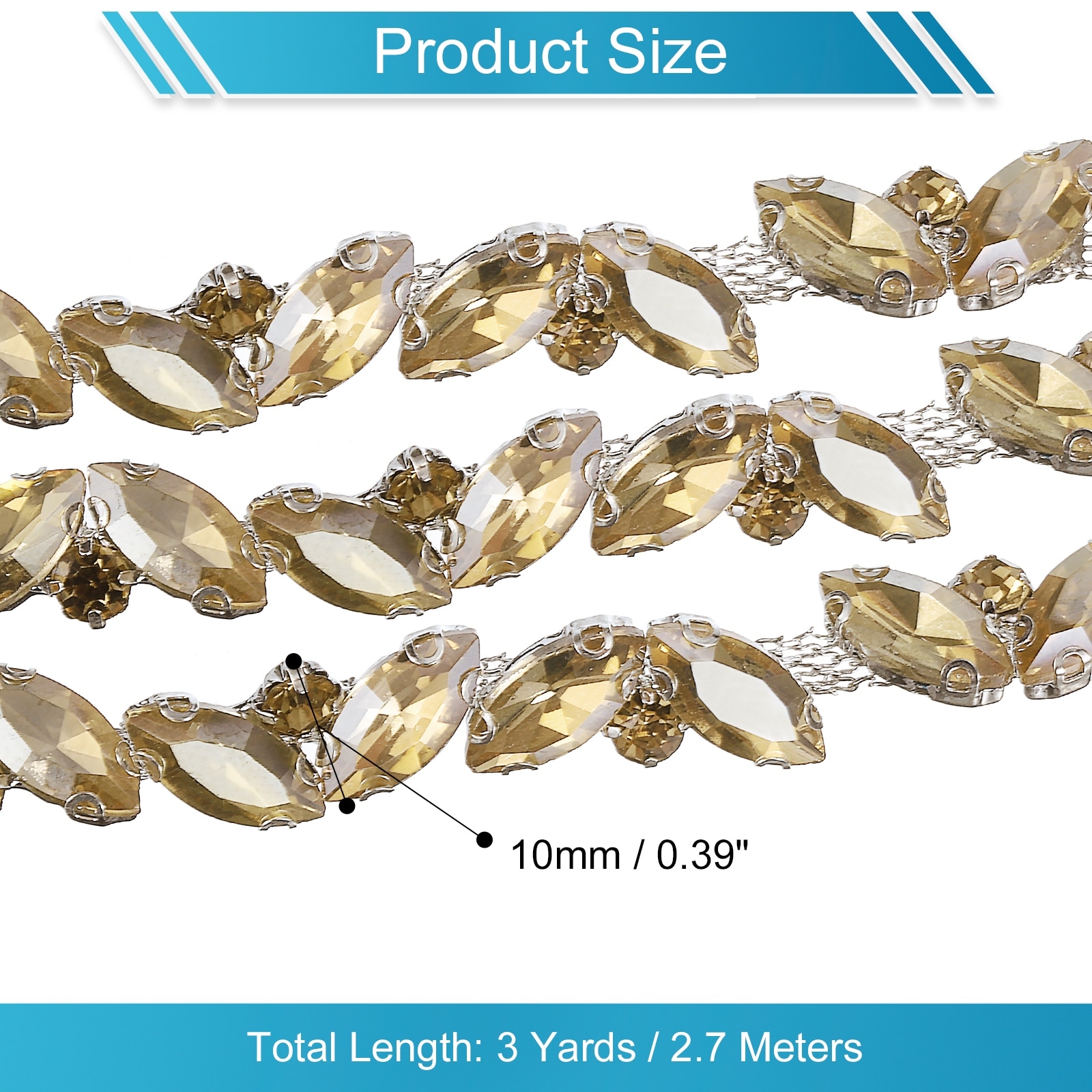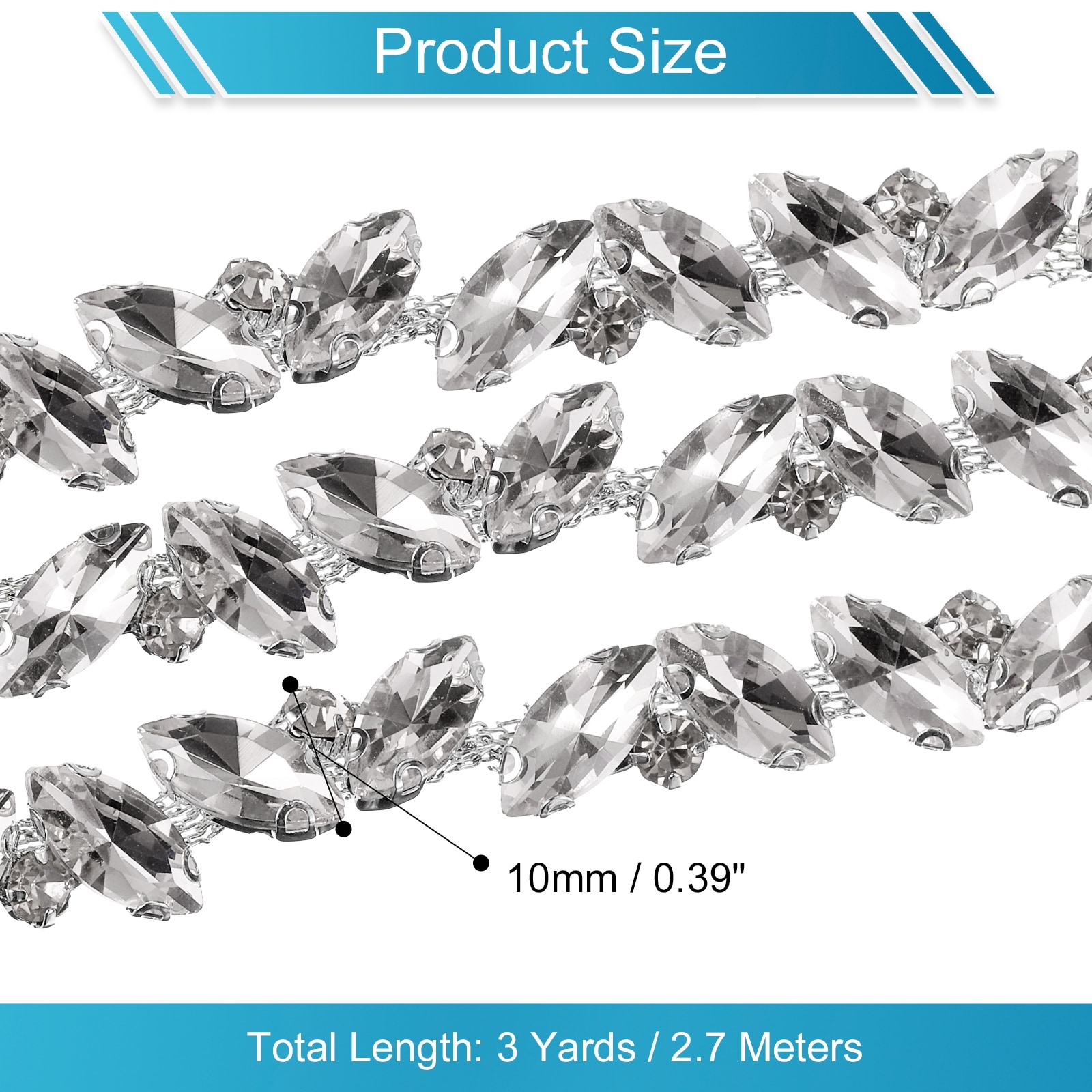 1 Yard Rhinestone Chain Trim, 10mm Shiny Crystal Chain Applique