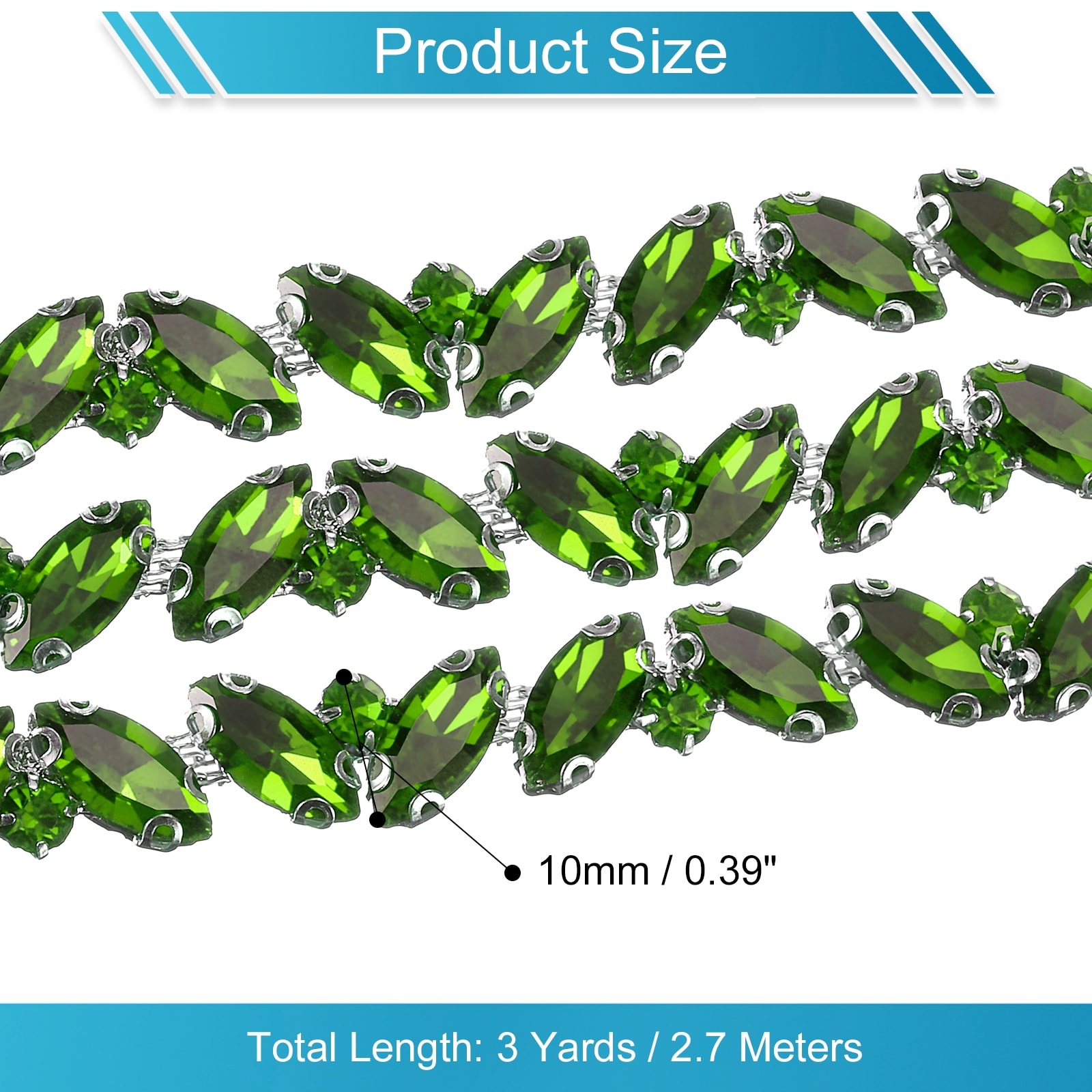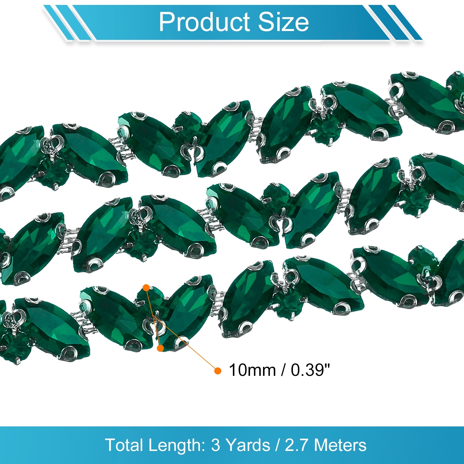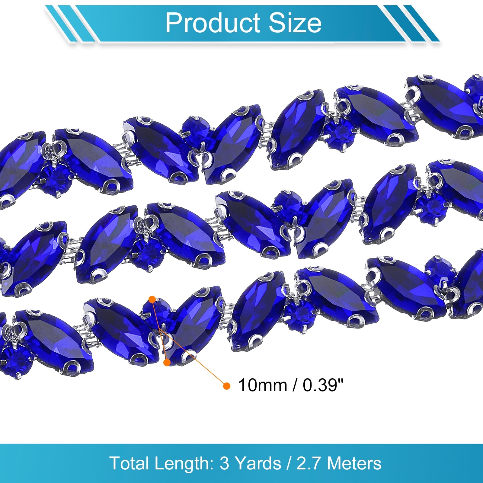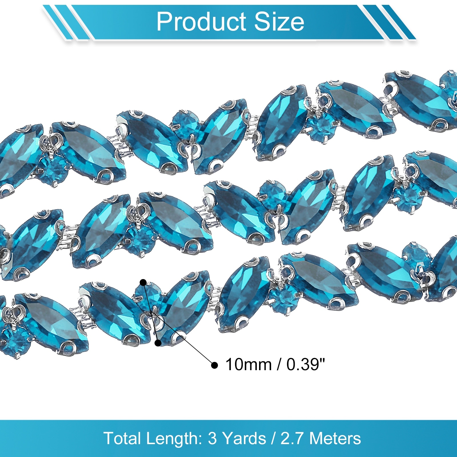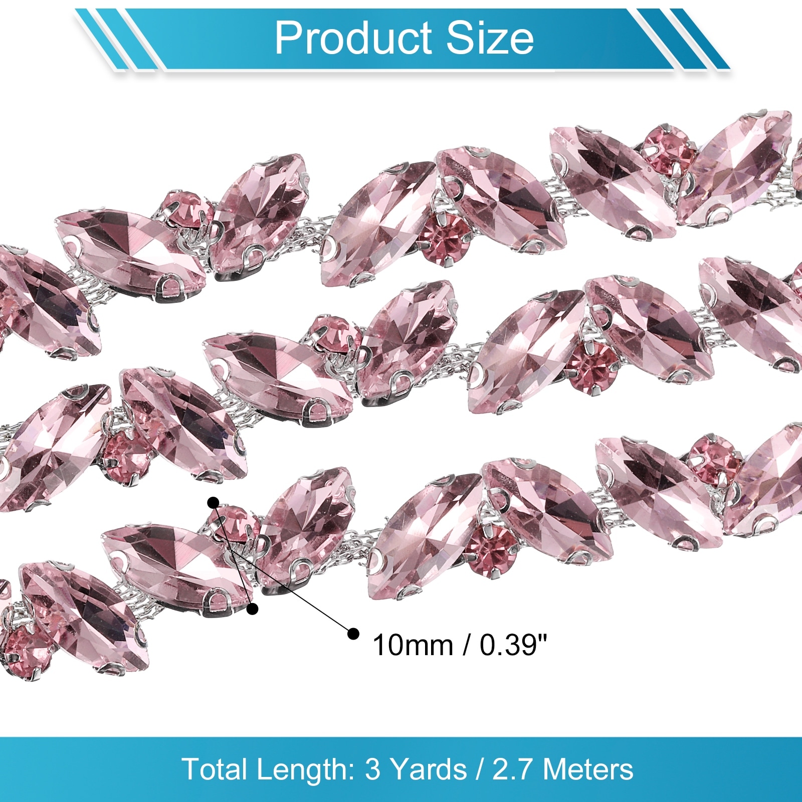 1 Yard Rhinestone Chain Trim, 10mm Shiny Crystal Chain Applique