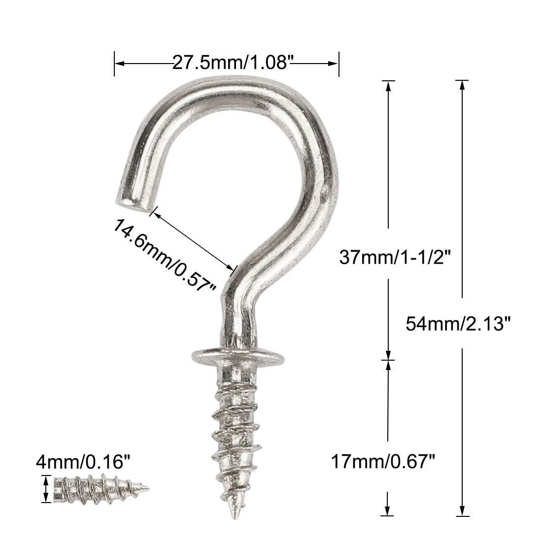 20pcs Cup Ceiling Hooks Metal Screw in Hanger Hooks for Home Office Indoor Outdoor Hanging Plants - Silver Gray - 1-1/2 Inch