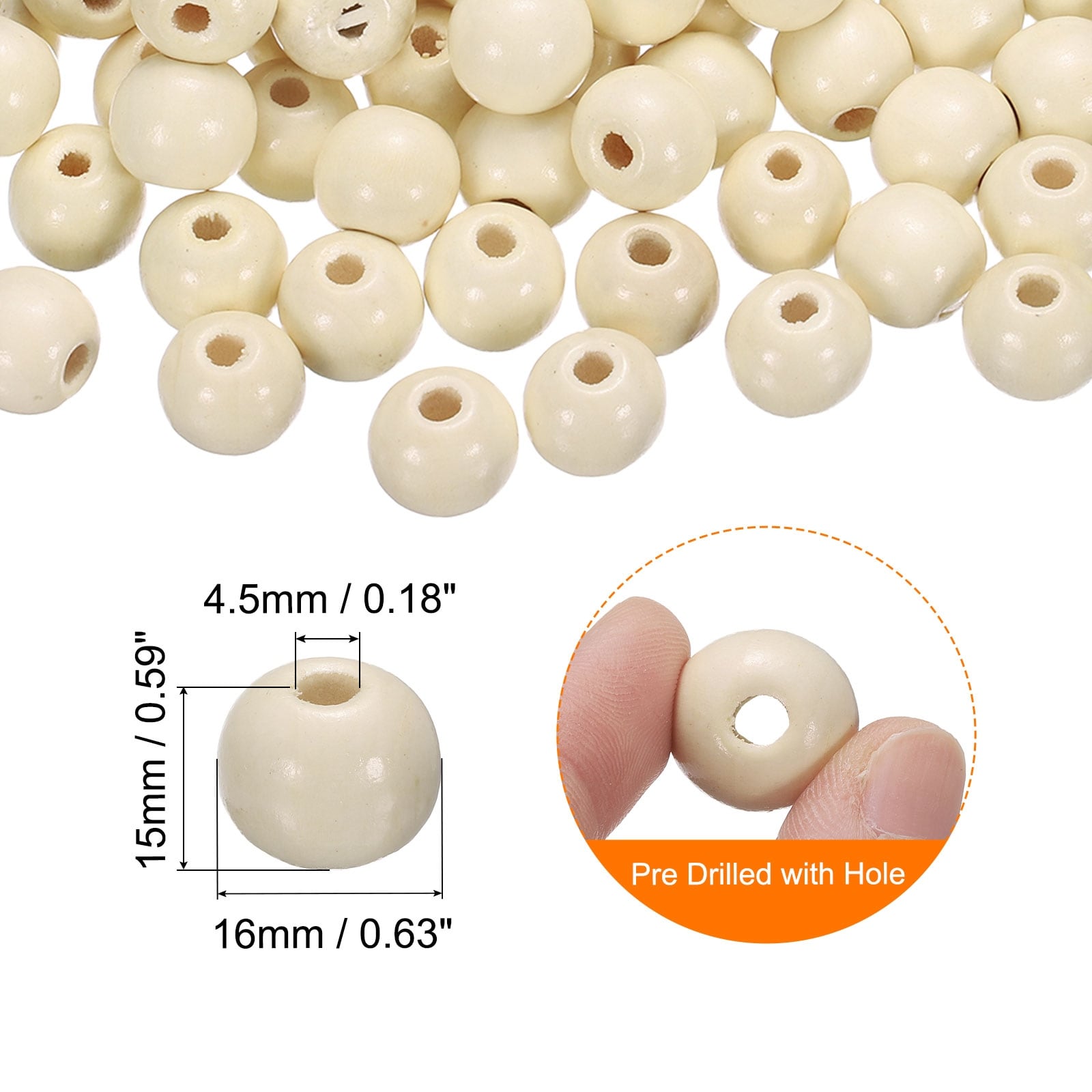 Large Hole Wooden Beads, Unfinished Natural Round Wood Spacer Beads Hair Braid Barrel Bead - 15 x 16mm