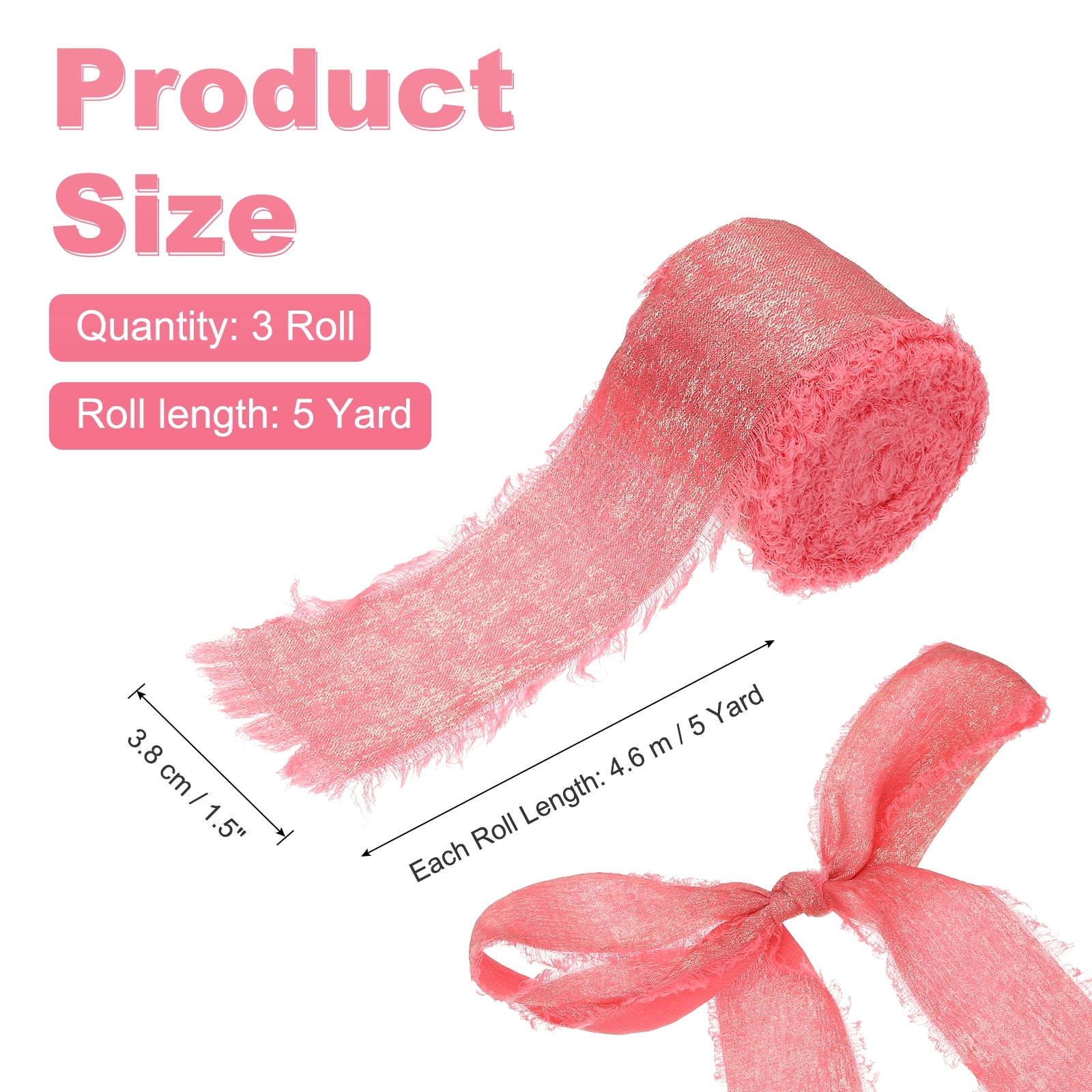 Shimmery Chiffon Ribbon, 3 Roll Metallic Frayed Fringe Ribbon Silk Satin for Flower Bouquet Gift Wrapping Wedding Invitations