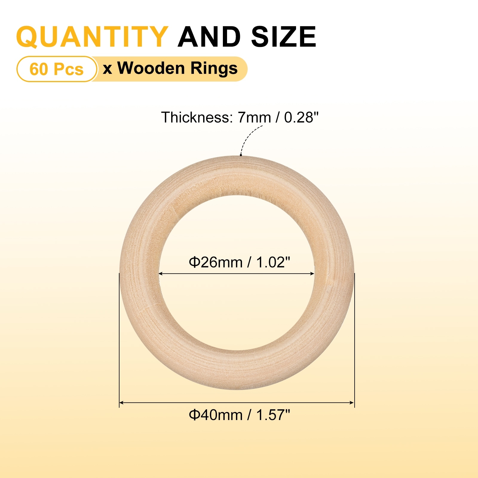 Natural Wood Rings, Unfinished Smooth Macrame Circles Wooden Ring for Crafts DIY Projects Jewelry Pendant Making - Wood Color
