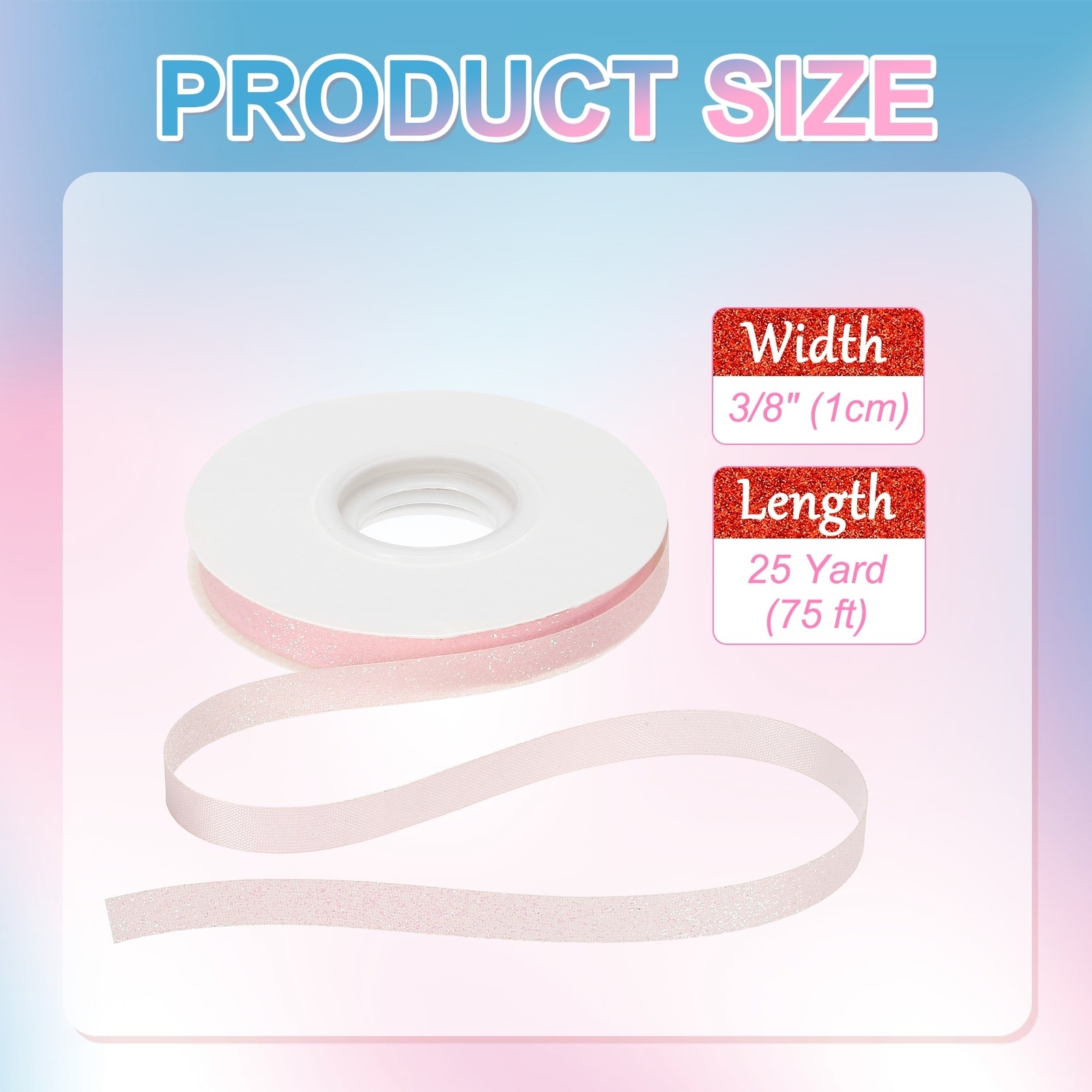 Metallic Glitter Ribbon Roll, Sparkly Ribbon Single Sided Cut Edge Design Gift Wrapping Fabric Rolls - 3/8 Inch x 25 Yards