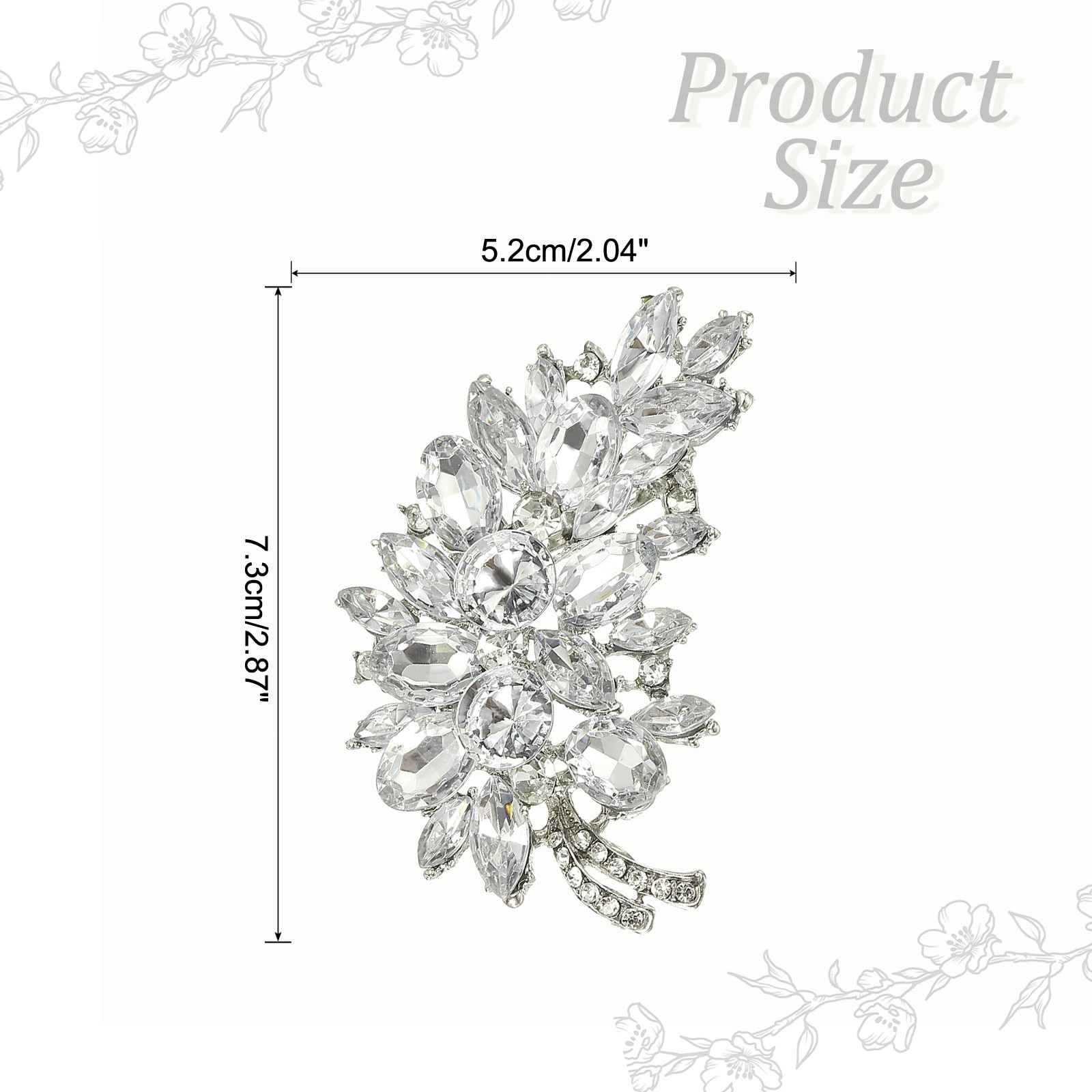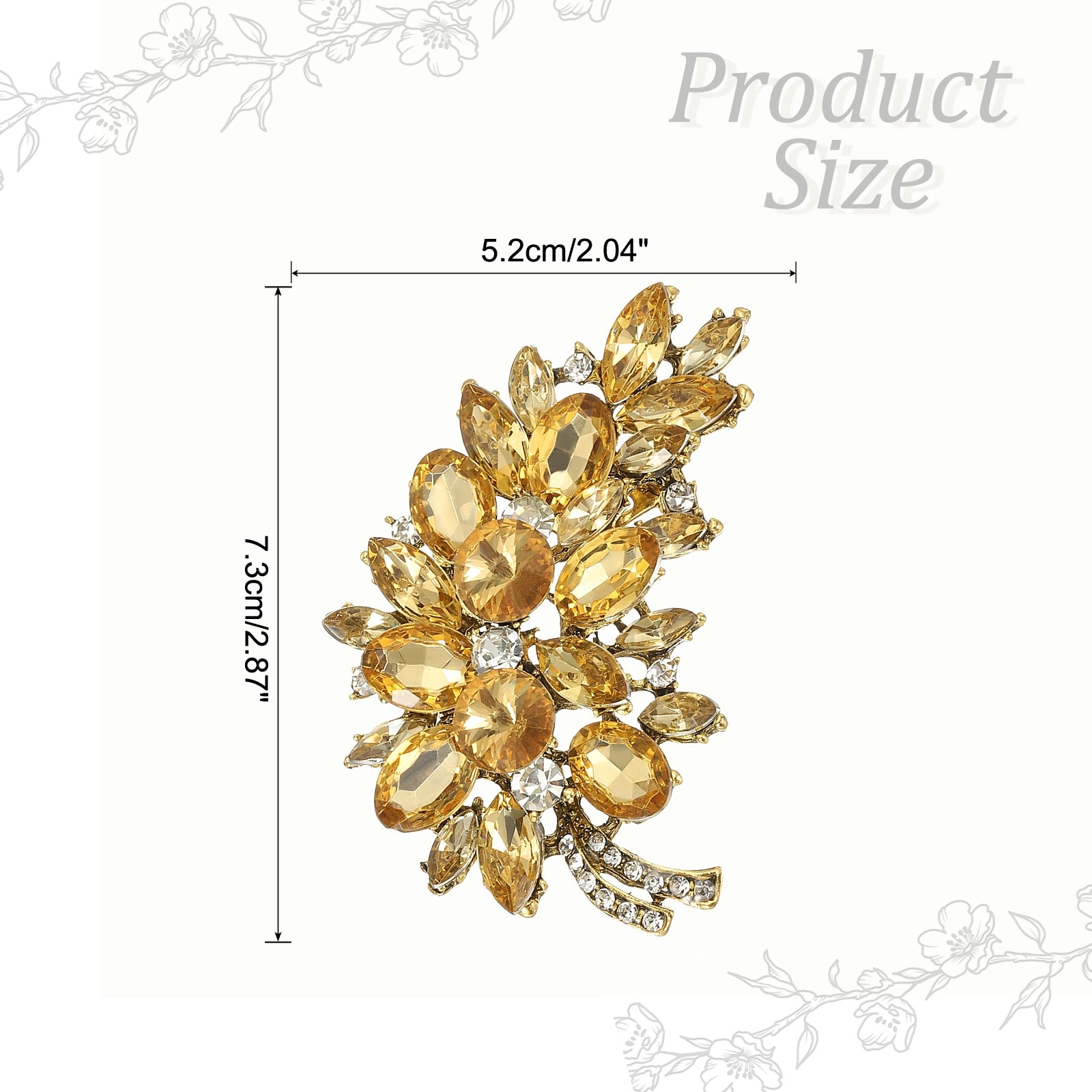 Rhinestone Flower Leaf Brooch Pins, Fashion Crystal Vintage Leaf Brooch Pin Lapel Pins - 6.2cm