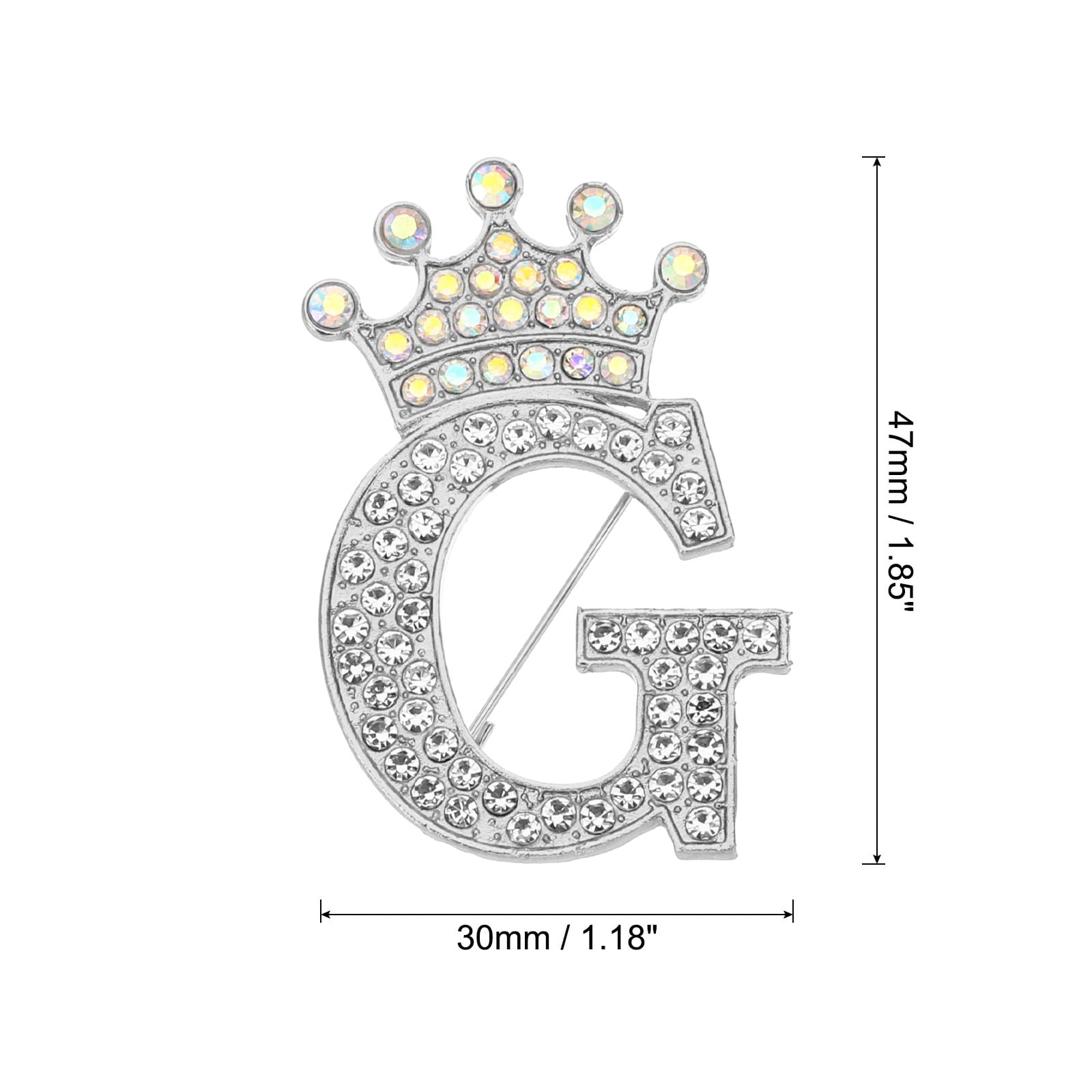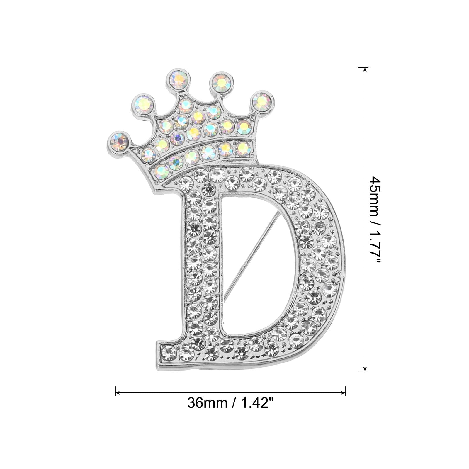 Letter Brooch Pins, Crown Initial Rhinestone Alphabet Letter Lapel Badges Pin for Women Suits - Silver Tone