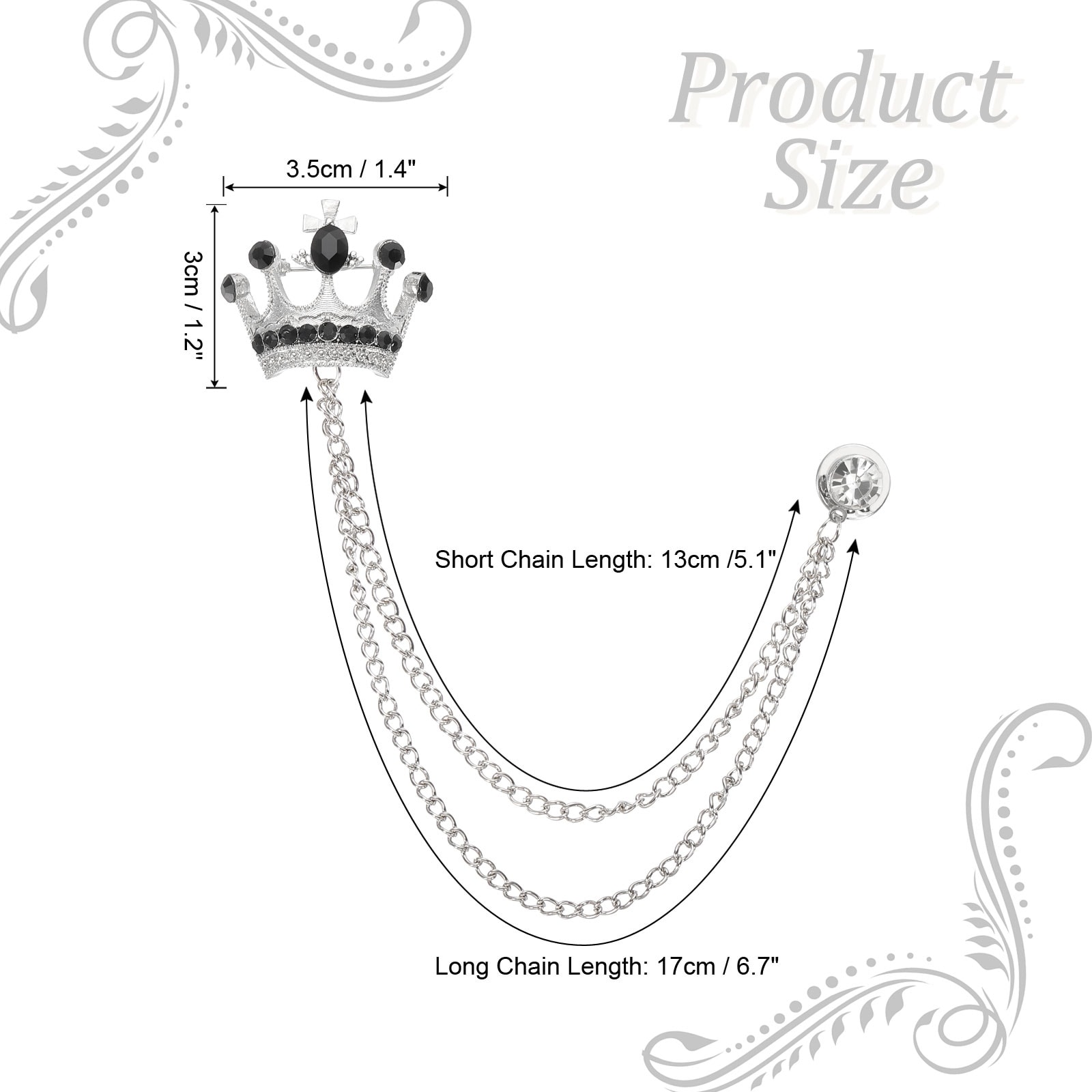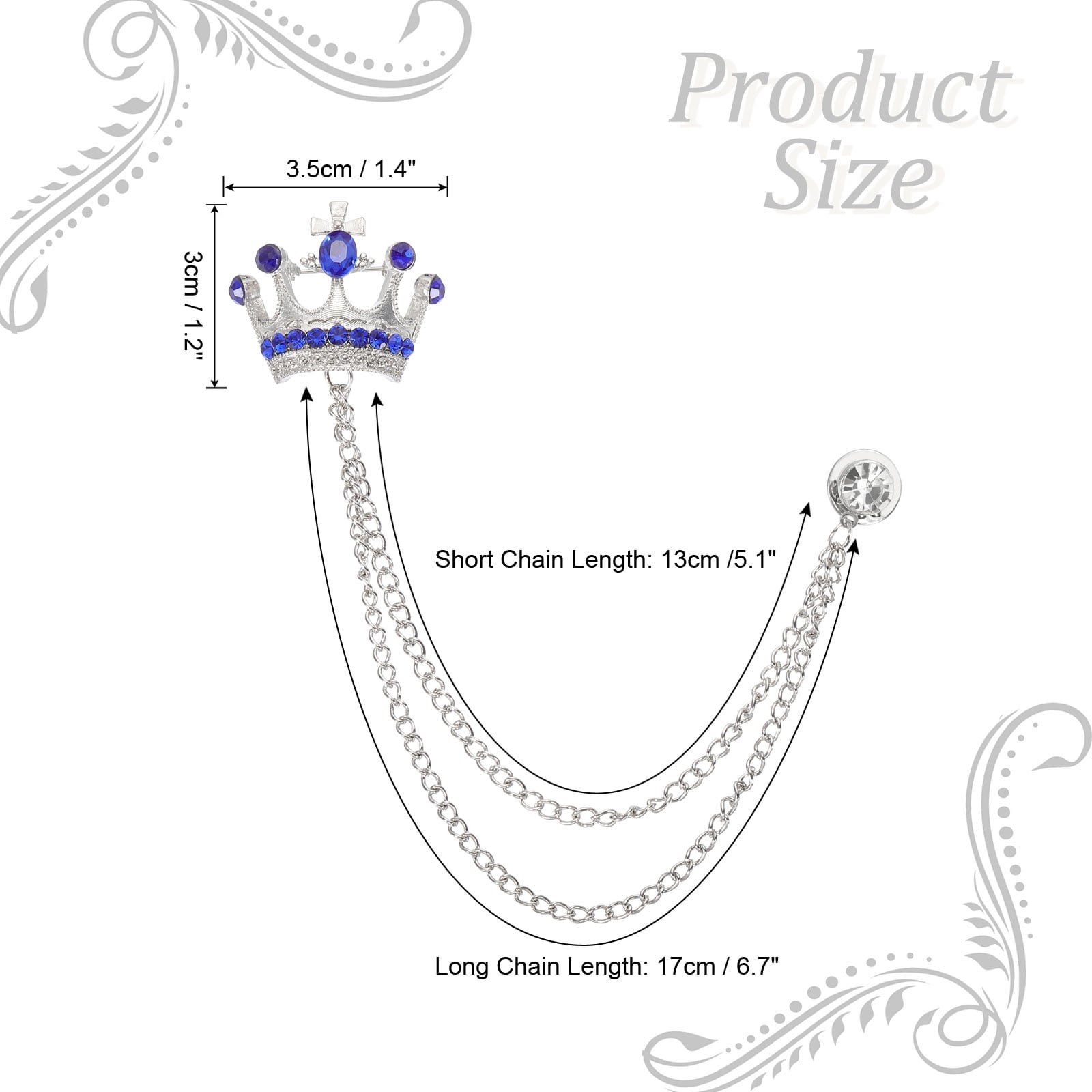 Crown Hanging Chain Brooch Pins, Rhinestone Suit Pins Fashion Crystal Lapel Pins for Women Men