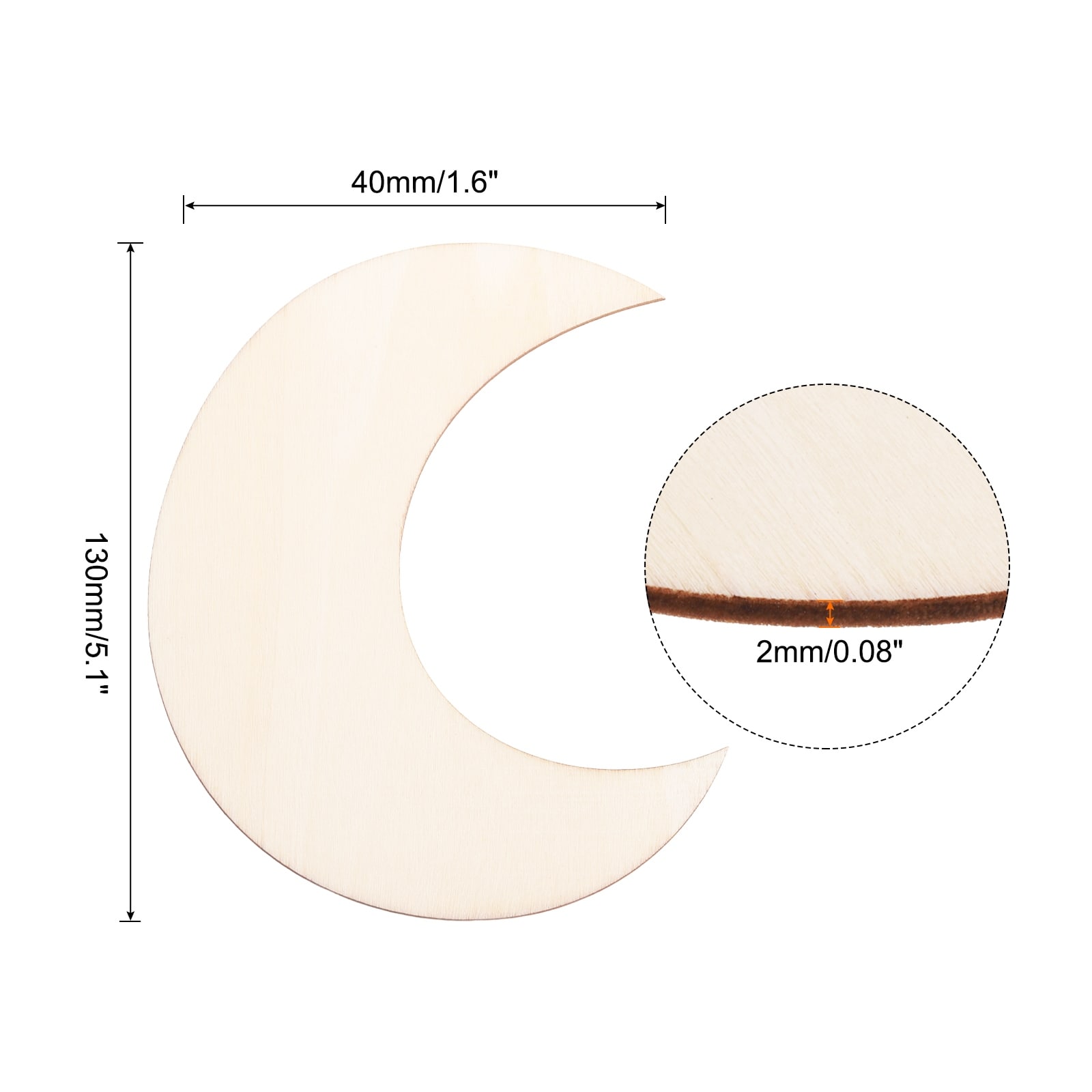 Wooden Moon, Unfinished Wood Moon Blank Wooden Cutouts Ornaments Natural Wood Pieces for Christmas Party - Brown