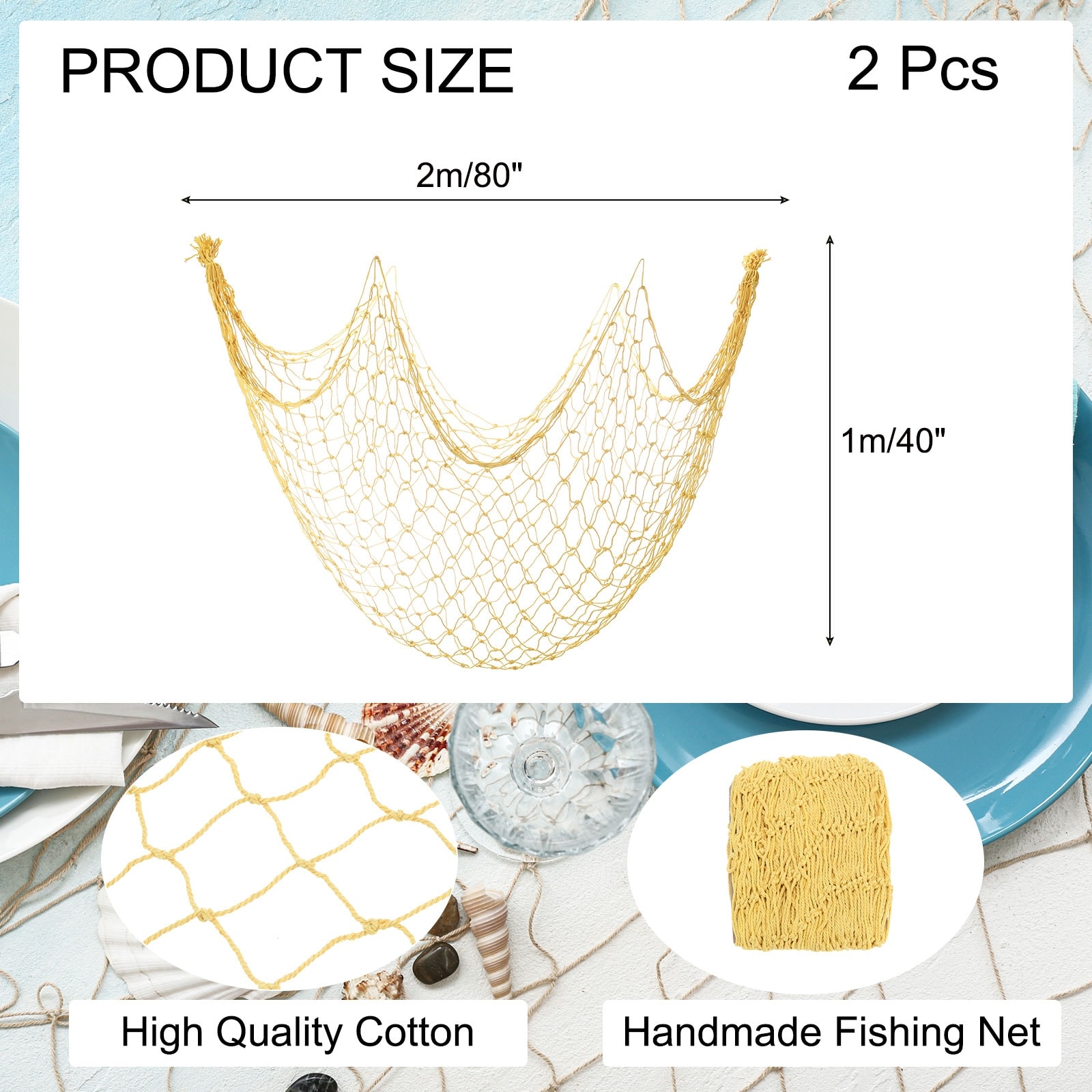 2 Pack Decorative Fishing Net Decor, Gold 80x40 Inch Wall Hanging Cotton Net