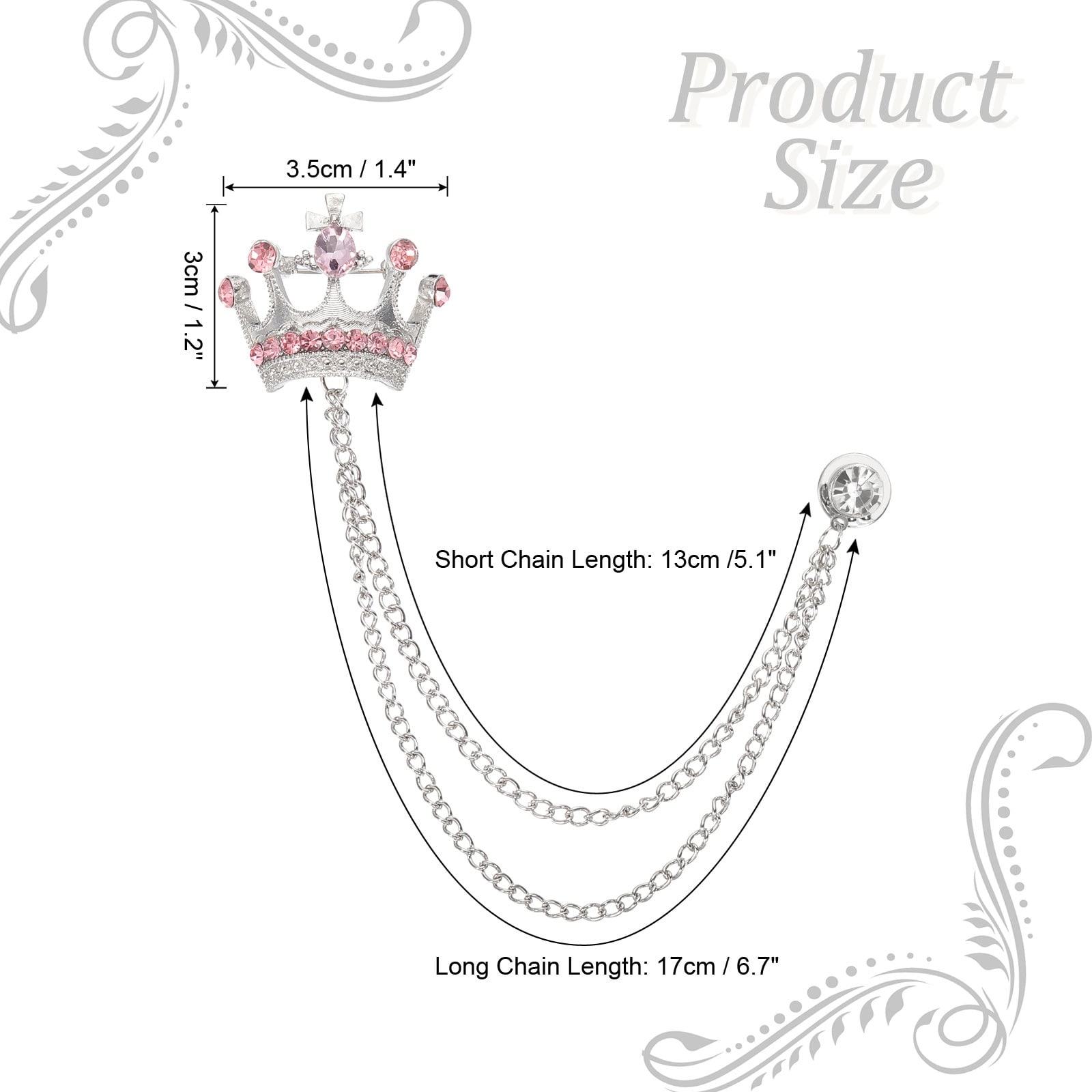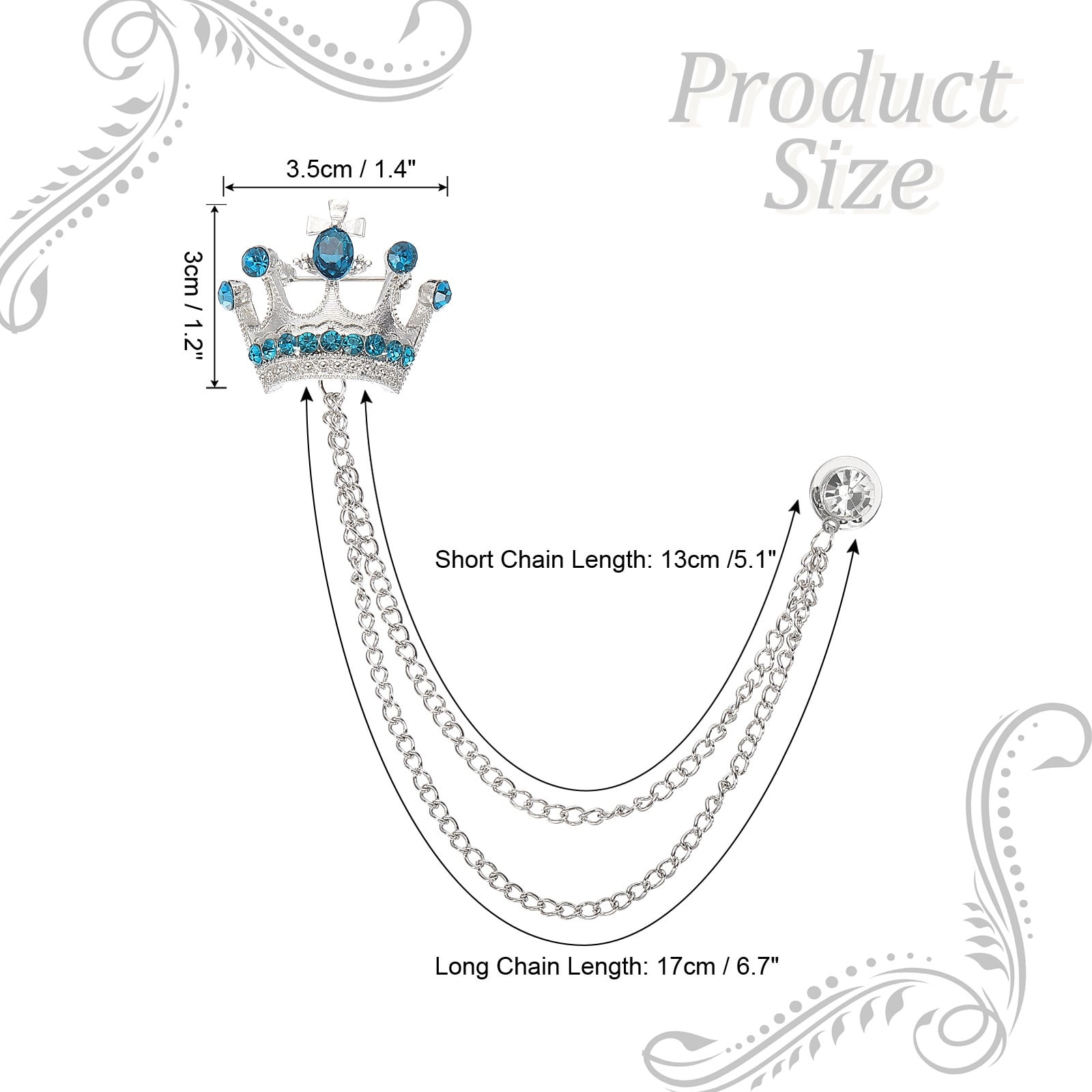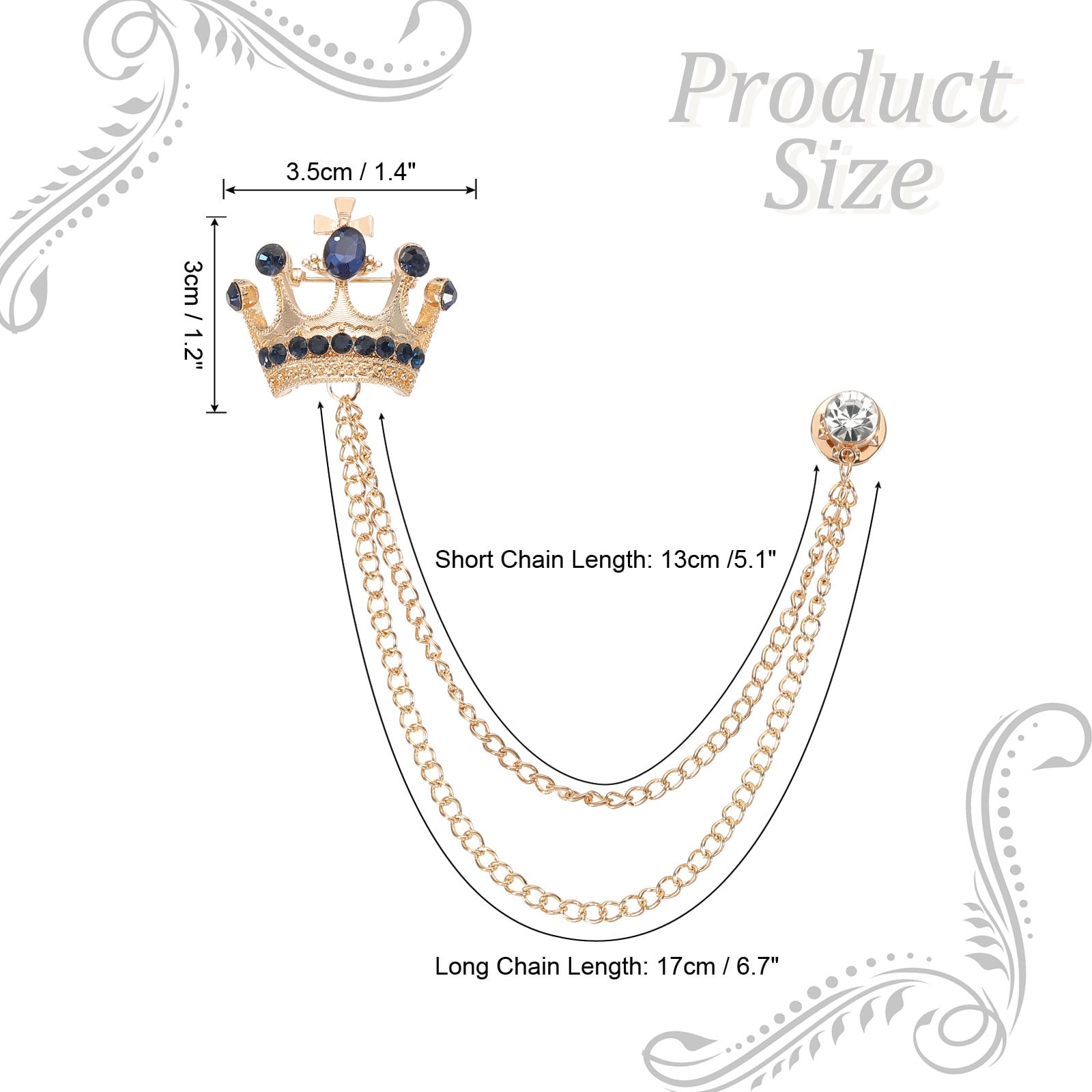 Crown Hanging Chain Brooch Pins, Rhinestone Suit Pins Fashion Crystal Lapel Pins for Women Men