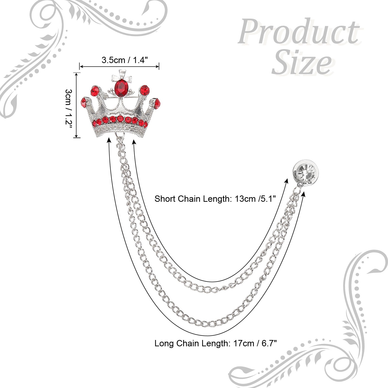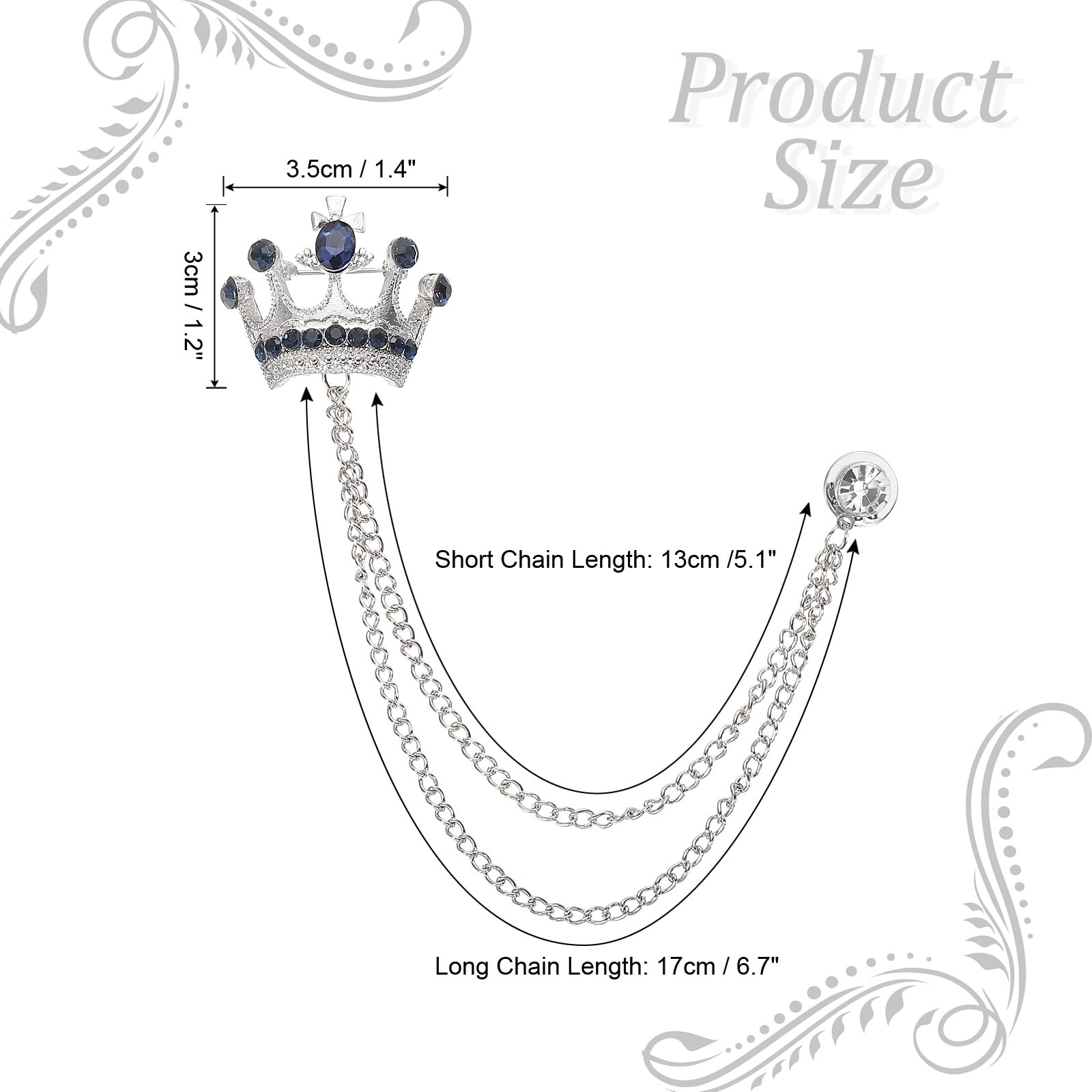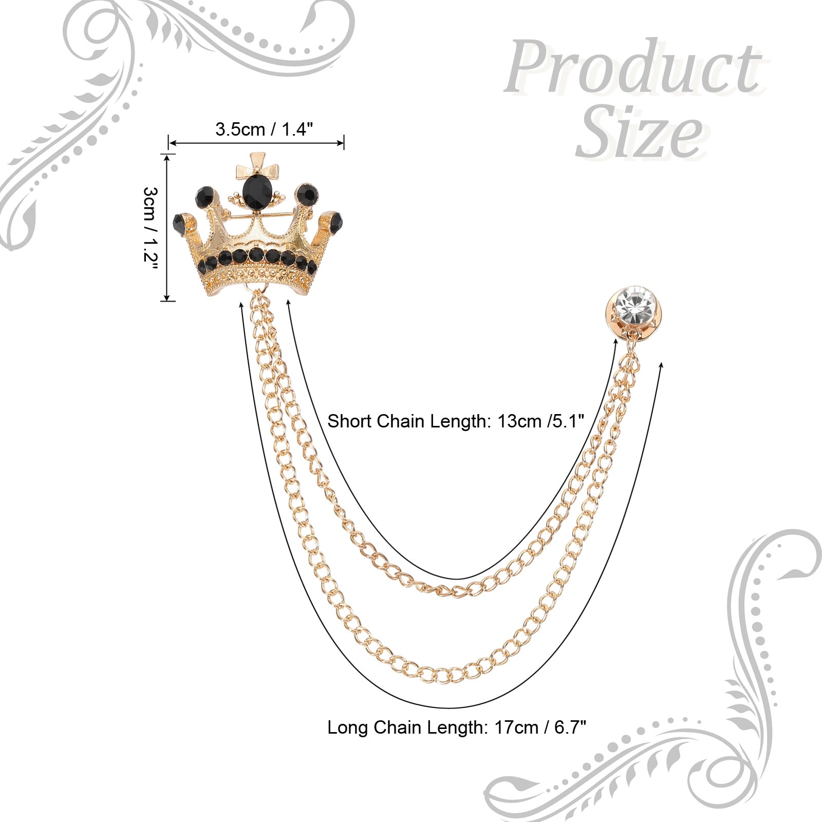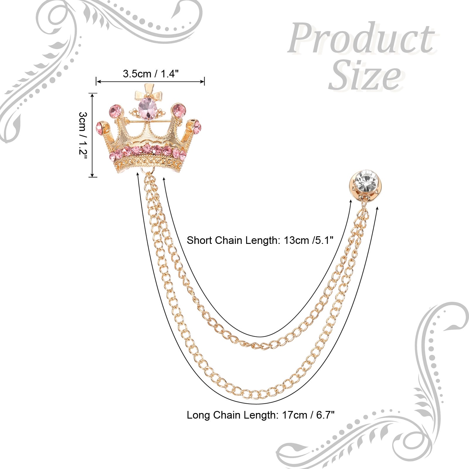 Crown Hanging Chain Brooch Pins, Rhinestone Suit Pins Fashion Crystal Lapel Pins for Women Men