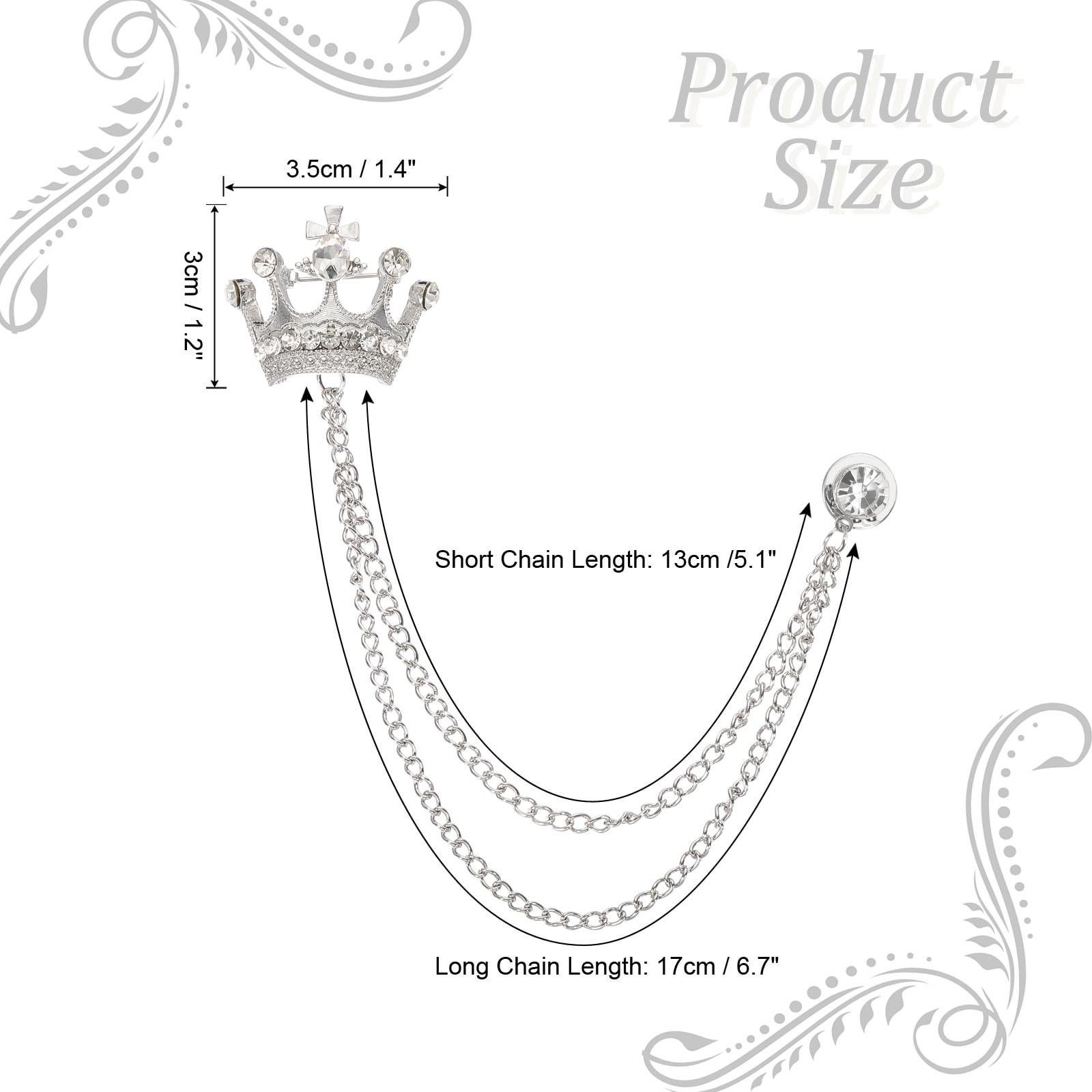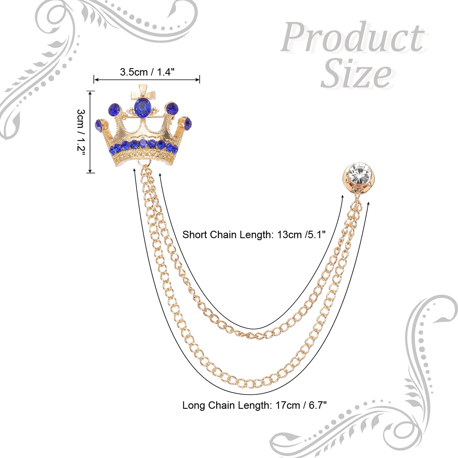 Crown Hanging Chain Brooch Pins, Rhinestone Suit Pins Fashion Crystal Lapel Pins for Women Men