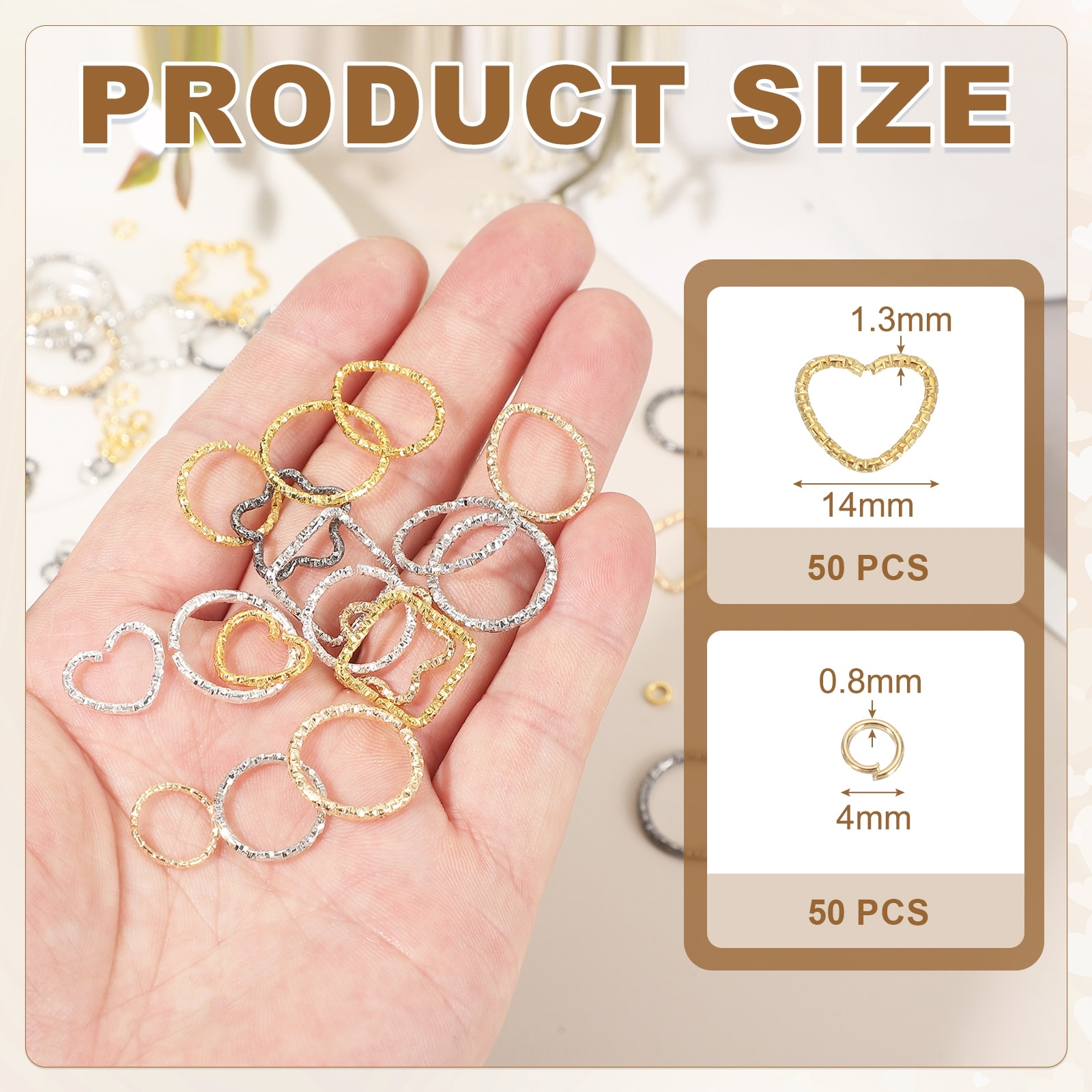 Open Jump Rings Embossed Jump Ring Kit Closed Heart Ring Connector for Bracelet