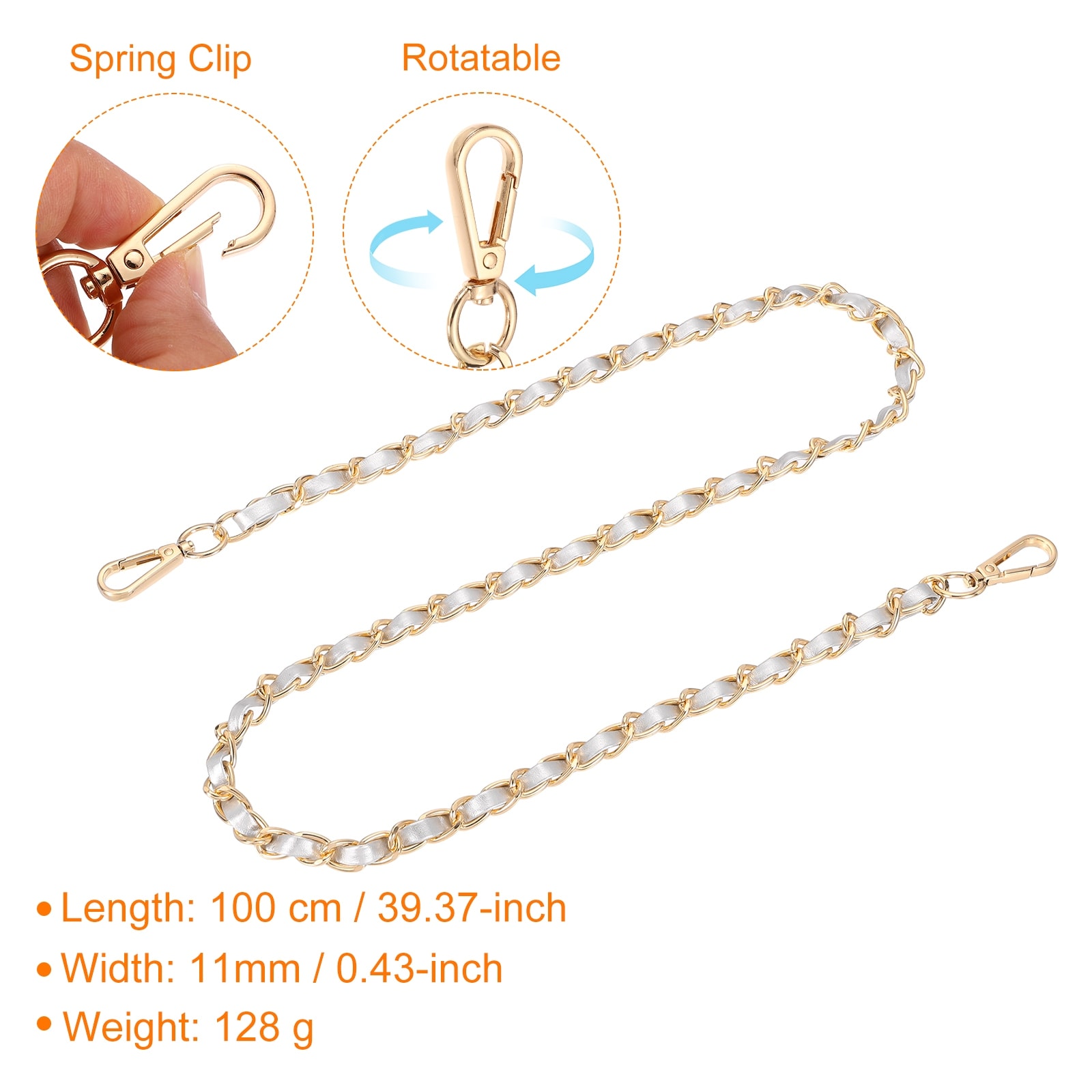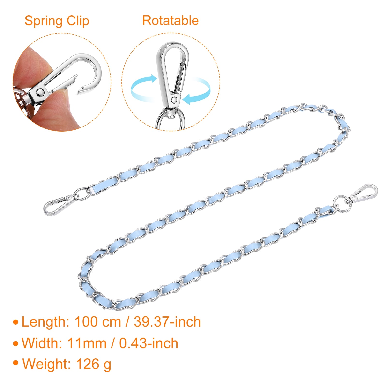 Purse Chain Strap, Leather Iron Flat Chain Handbag Chains Purse Straps with Buckles for Shoulder and Cross Body Bag
