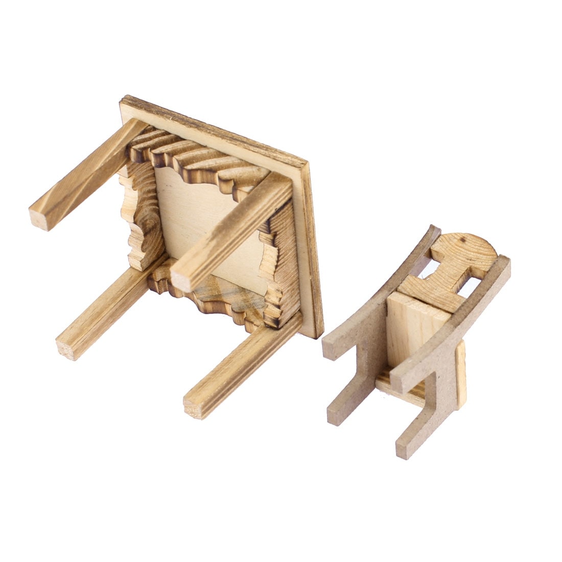 Home Office Wooden Desktop Decoration Flower Printed Craft Table Chair Set - Multicolor - 1 Set