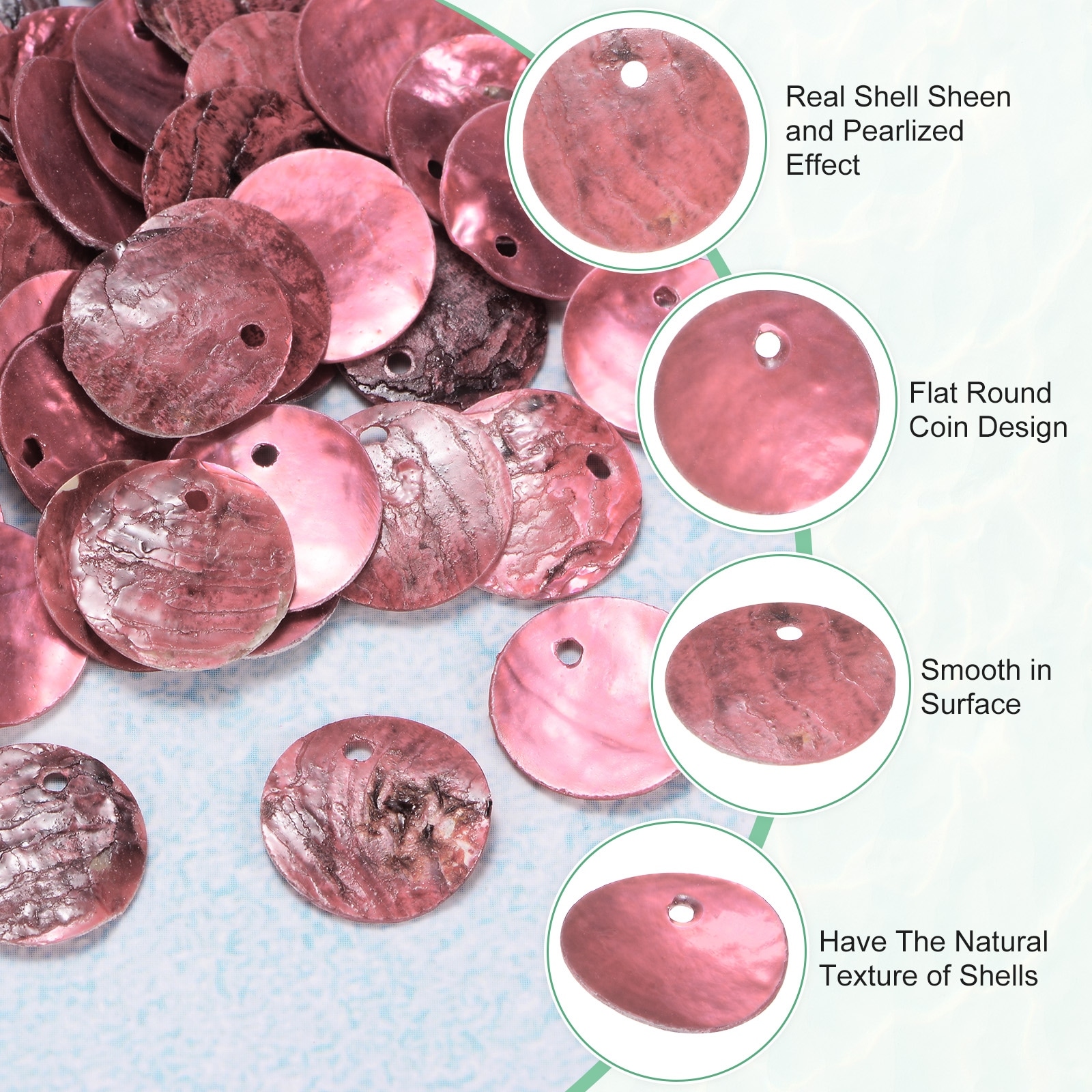 Flat Round Shell Coin Drop Charm Beads, Flat Shell Beads with Hole for Jewelry Making - Cherry Blossom Pink