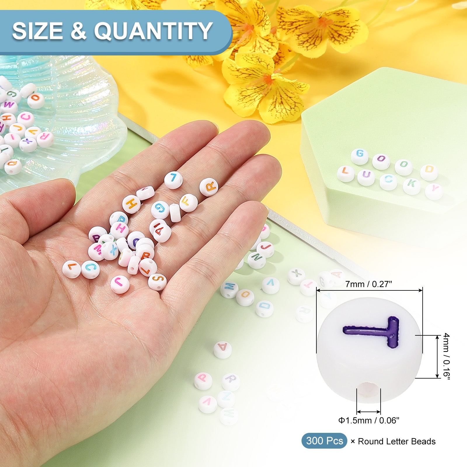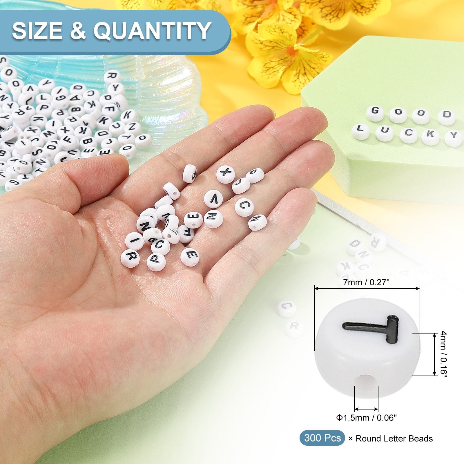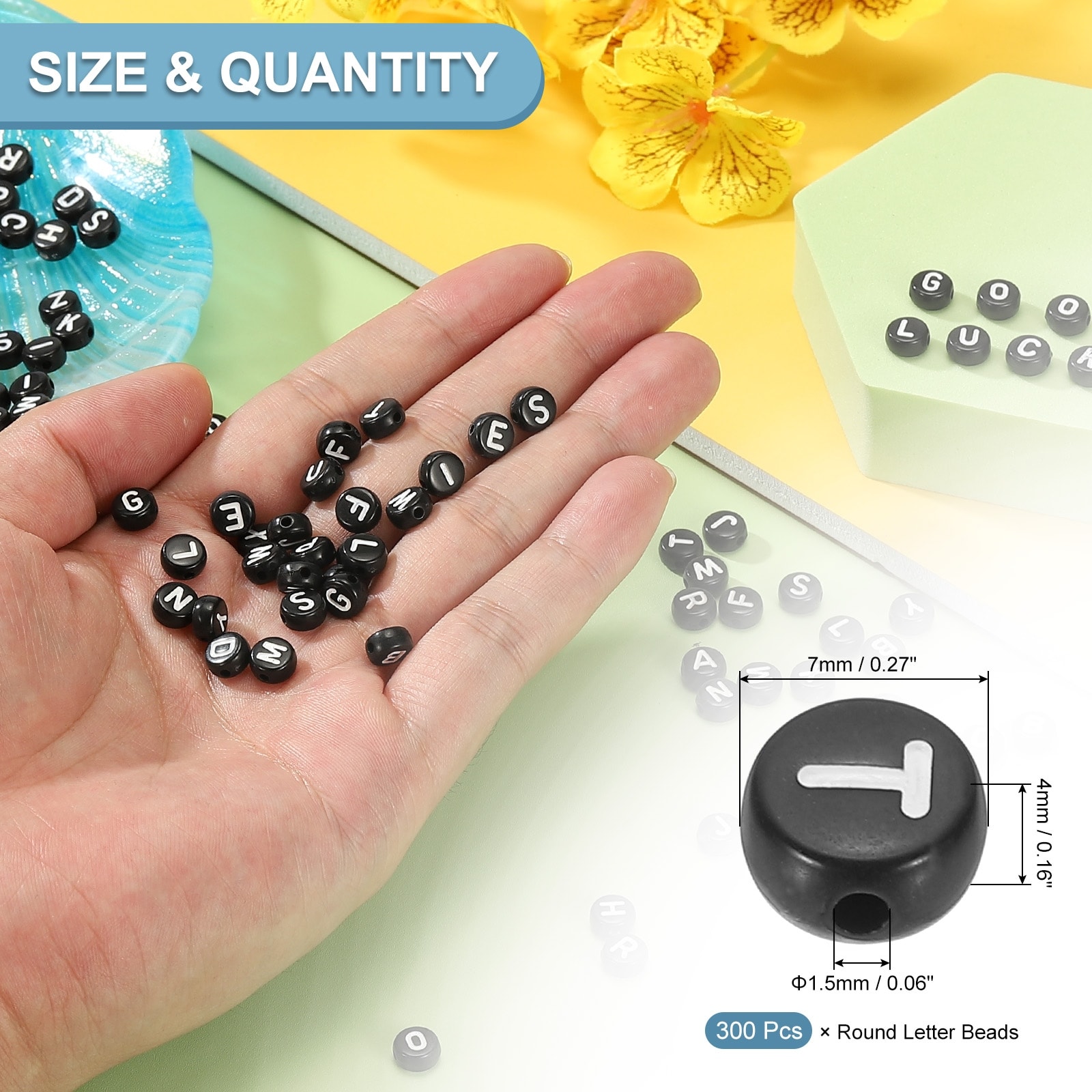 Round Letter Beads,Acrylic Alphabet Beads White Beads Black Letters for Making Bracelets Making Necklaces DIY