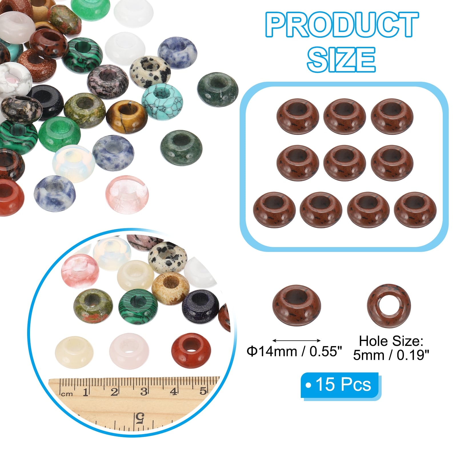 Gemstone Beads, Large Hole Rondelle Beads Loose European Crystal Beads Pack for Jewelry Bracelet DIY Craft