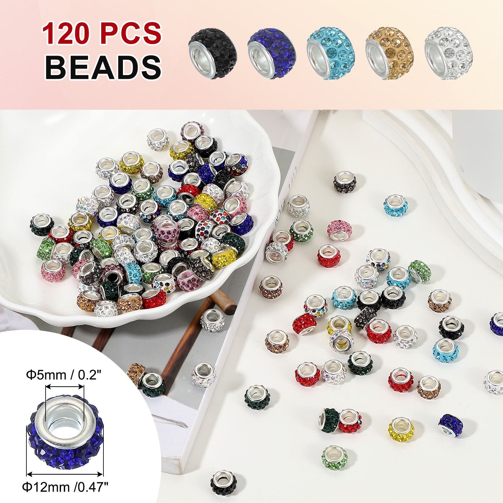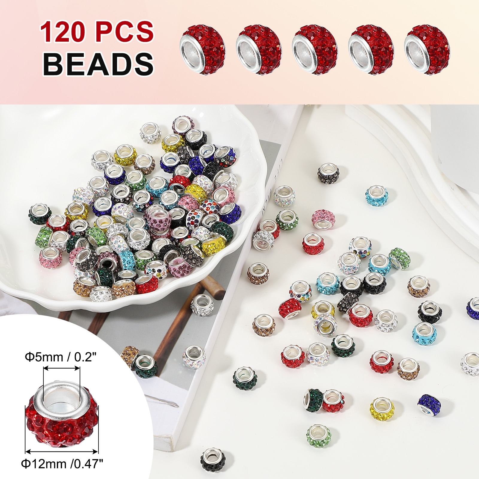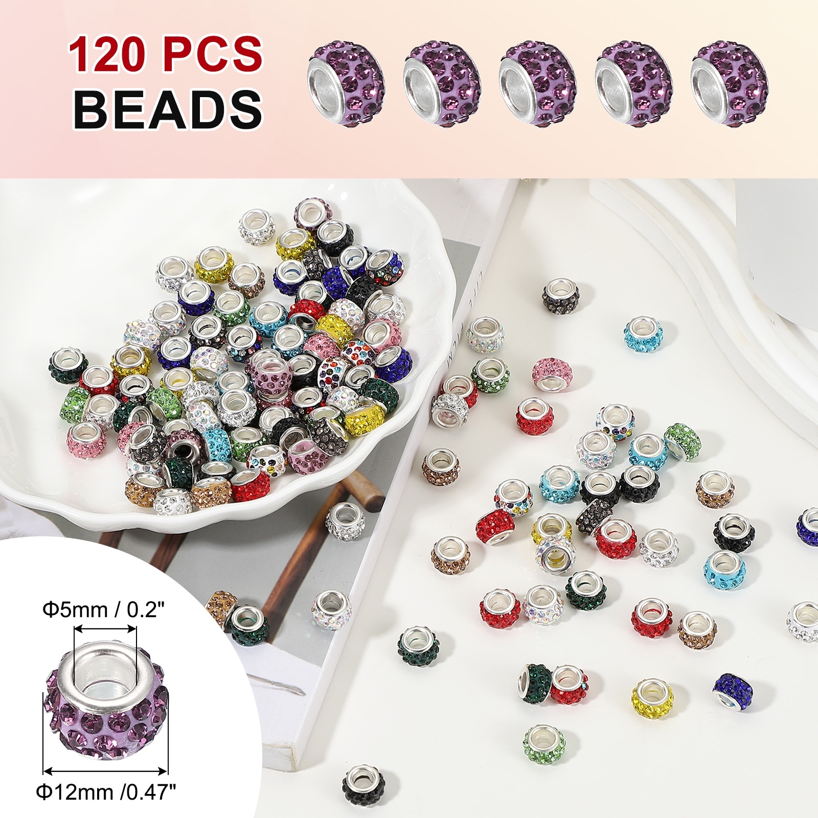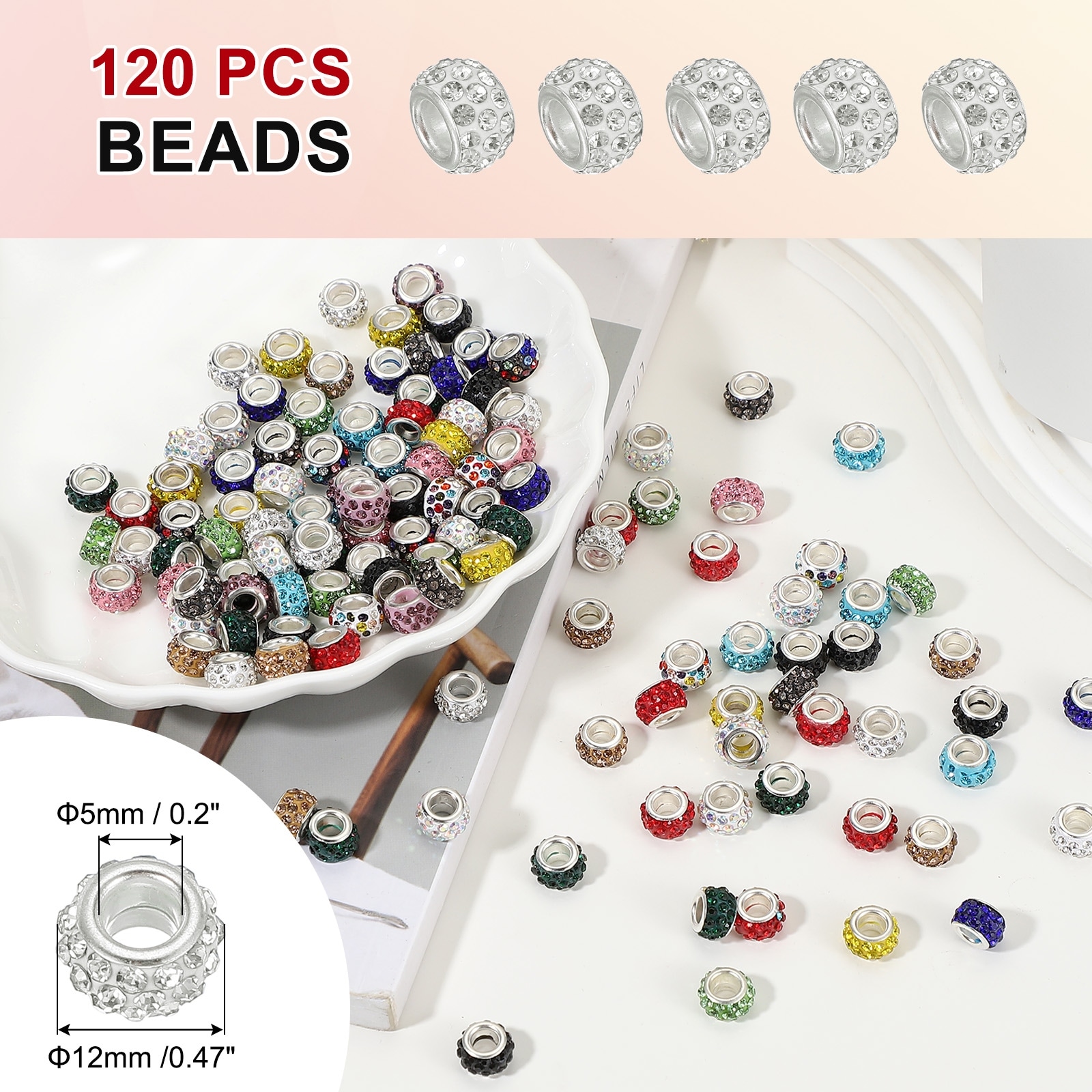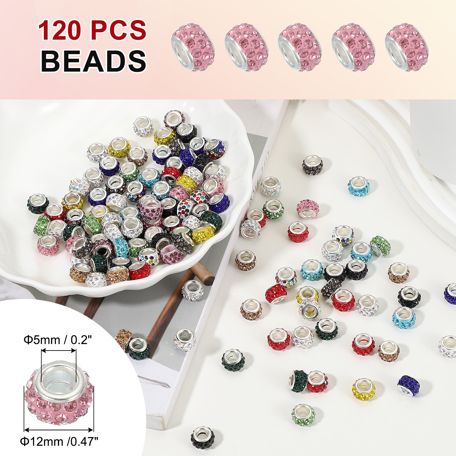 European Large Hole Beads Rhinestone Sparkle Crystal Beads Charm Spacer Craft Beads for Pens Bracelet Making DIY Crafting