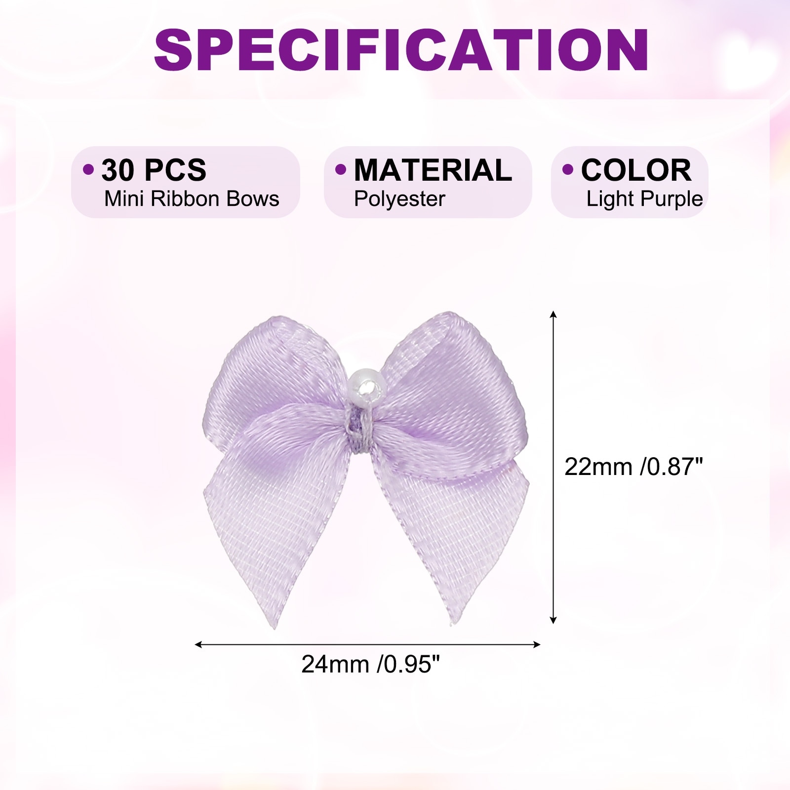 Mini Ribbon Bows, Flower Pearl Sewing Appliques Decoration for DIY Craft, Wedding, Christmas - 22cm x 24cm
