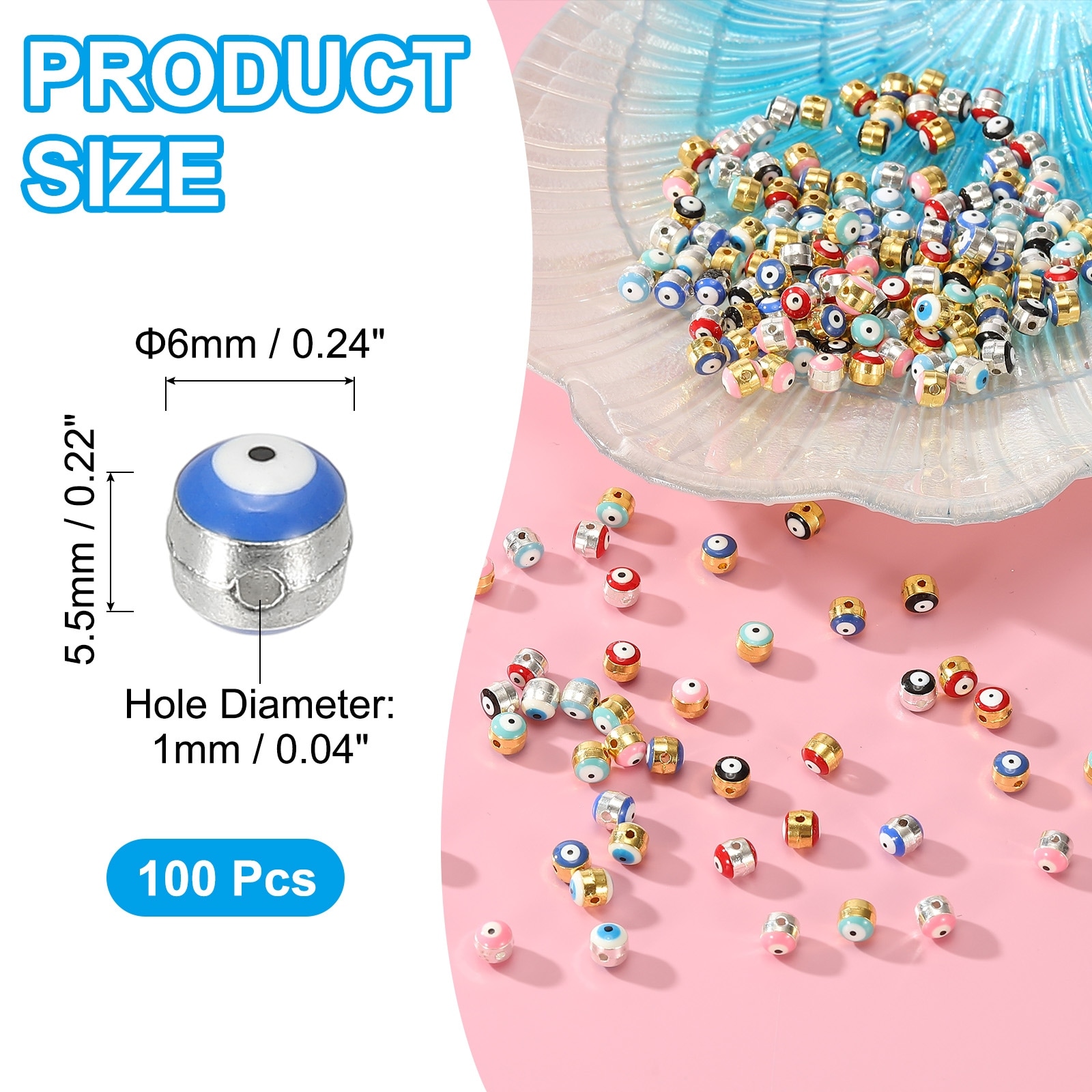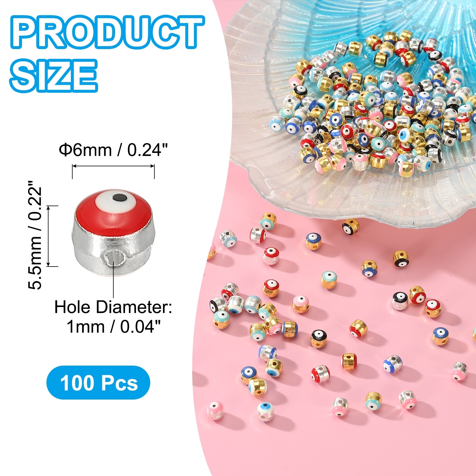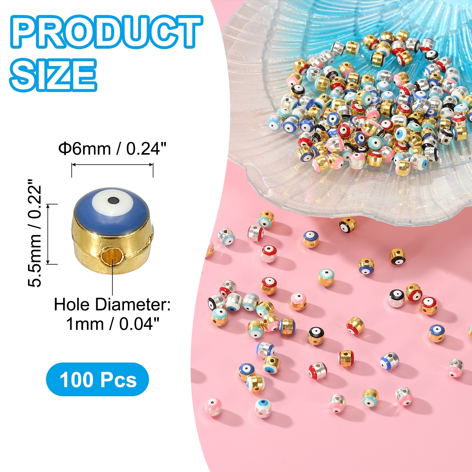 Enamel Evil Eye Bead, Gold Plated Turkish Evil Eye Charm