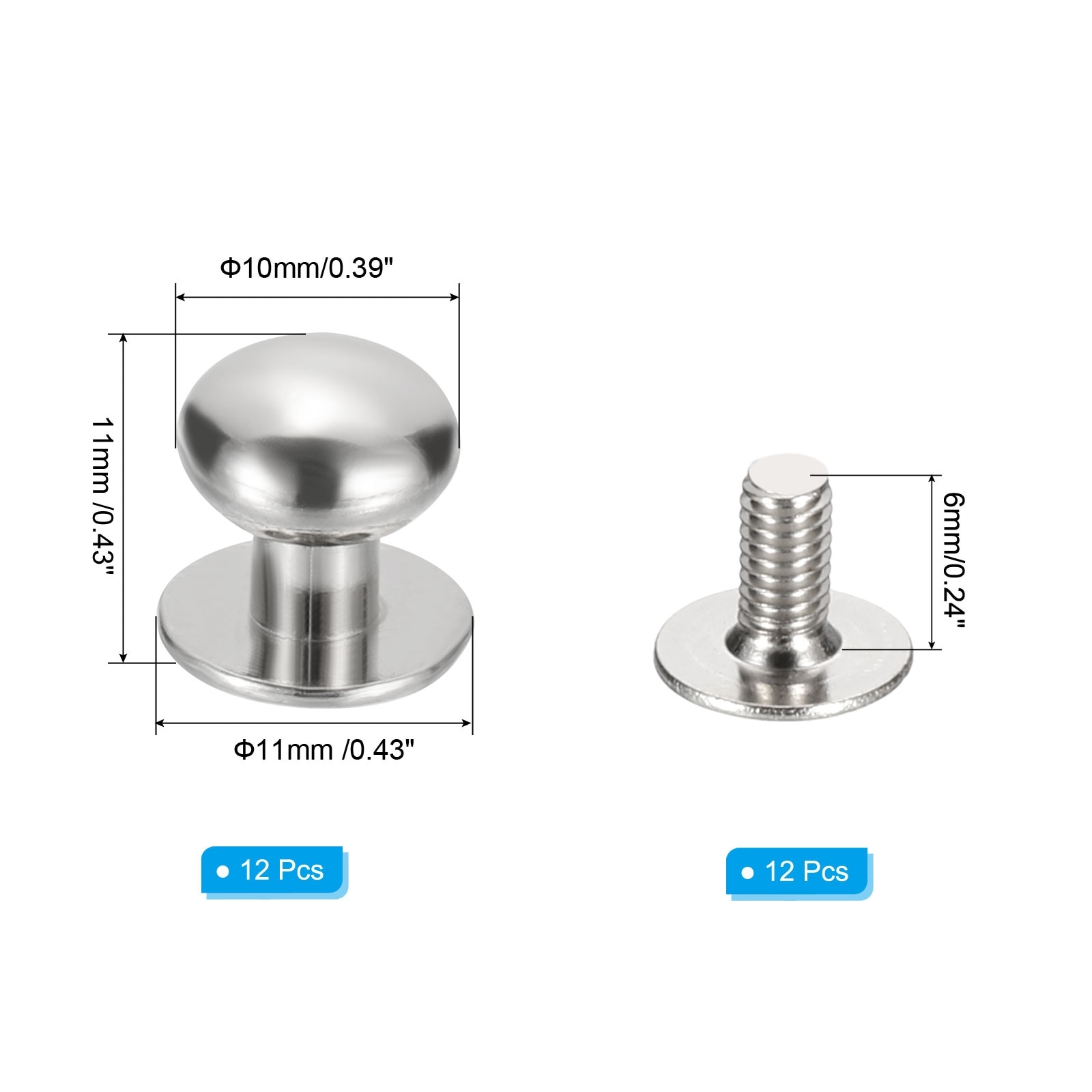 Rivets for Leather, Metal Button Spikes Screw Kit Screw Back Round Head Rivets Screw Buttons DIY Trim Craft - 10x11x11mm