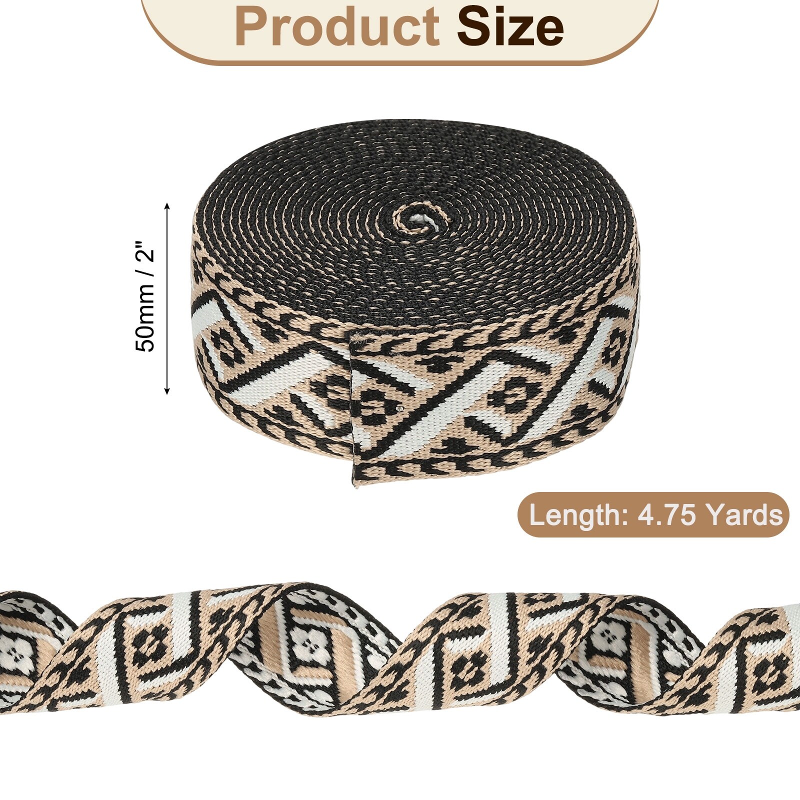 Cotton Webbing Strap Jacquard Webbing Ribbon Embroidery Polyester Webbing Straps Purse Strap Belt for Purse - 4.75Yards x 50mm