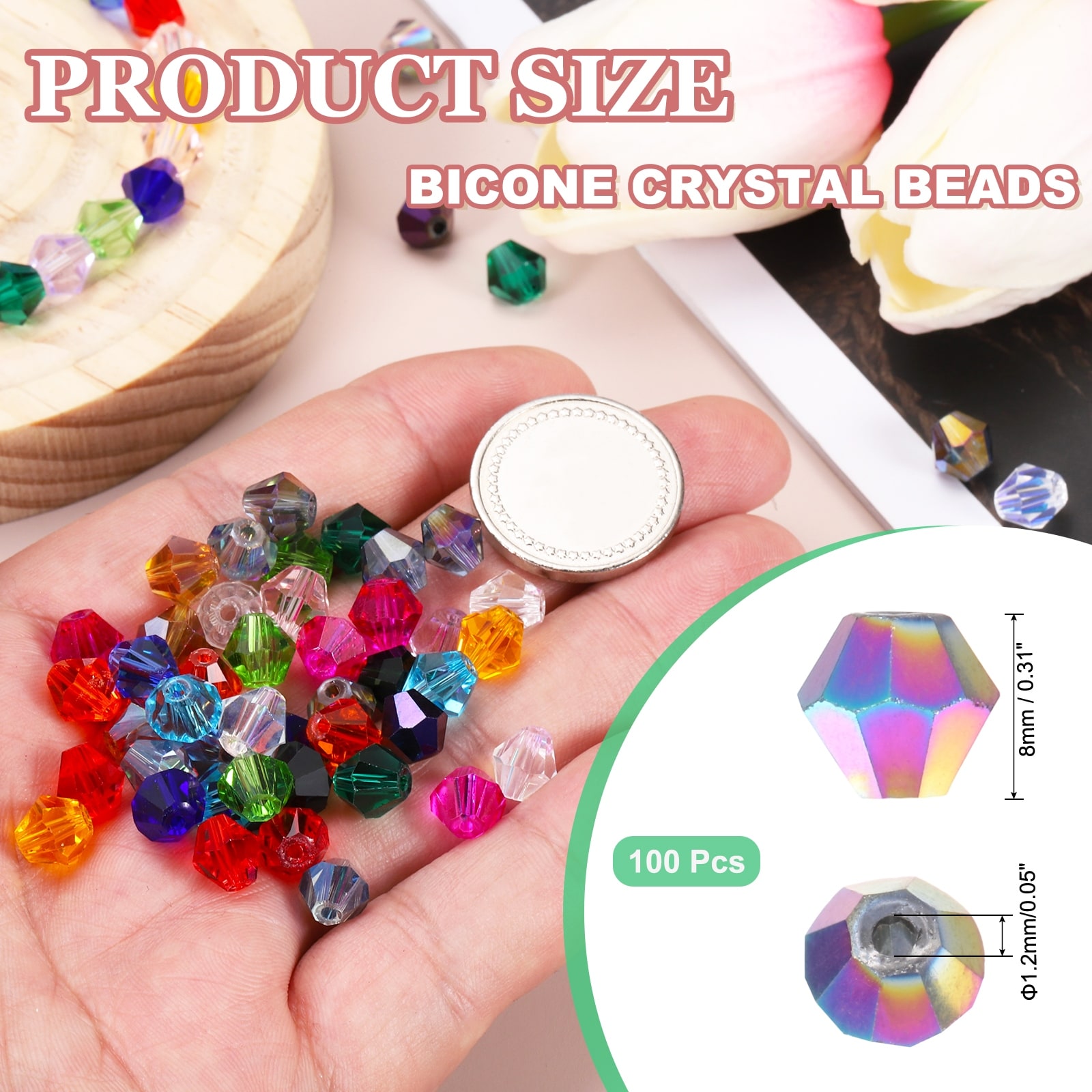 Bicone Glass Crystal Beads, Faceted Beads with Box - 8mm