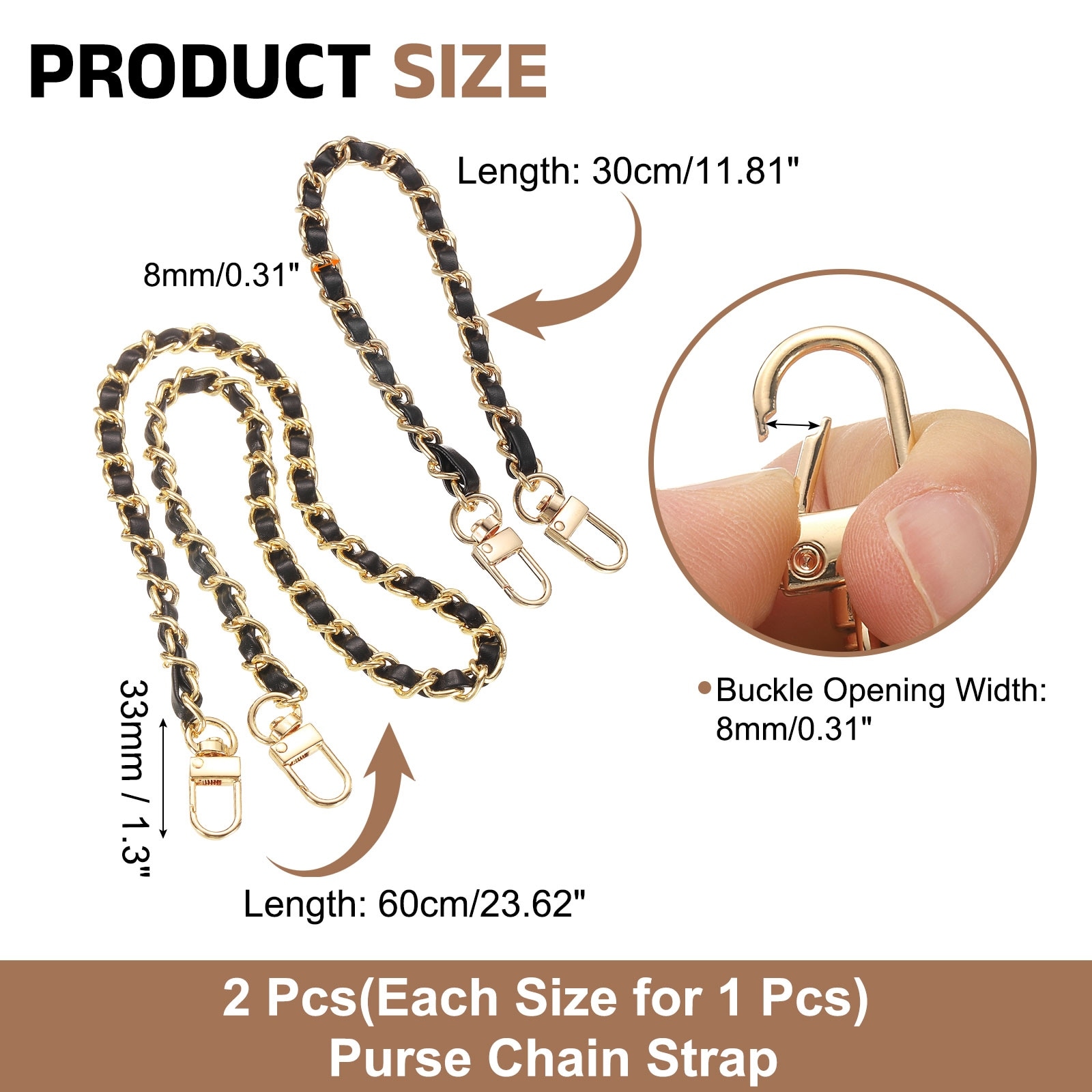 Purse Chain Strap, Iron Leather Bag Chain Strap Replacement with Buckle for Handbag Shoulder Crossbody Bag