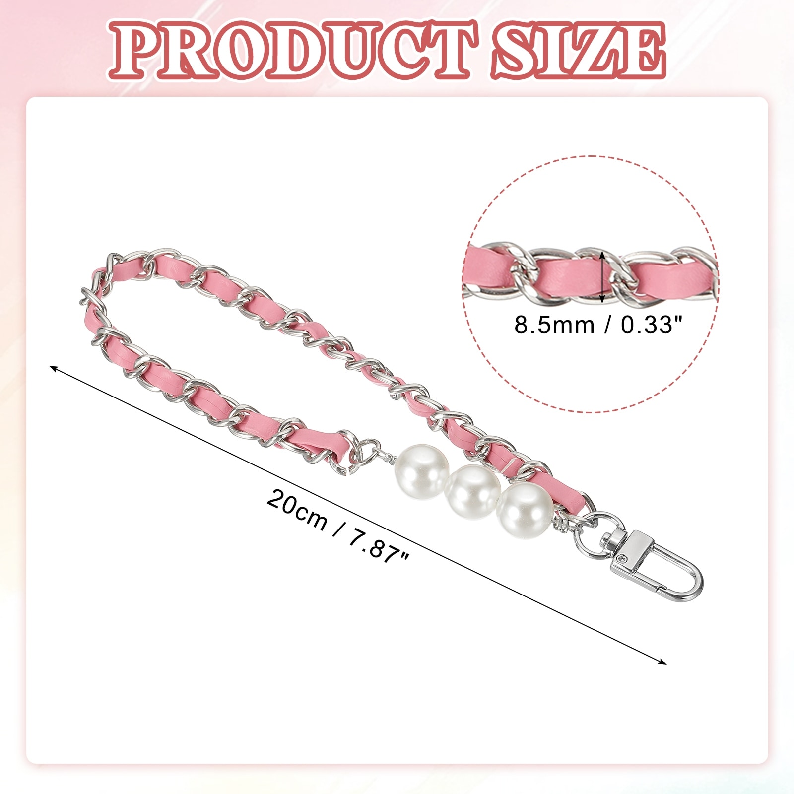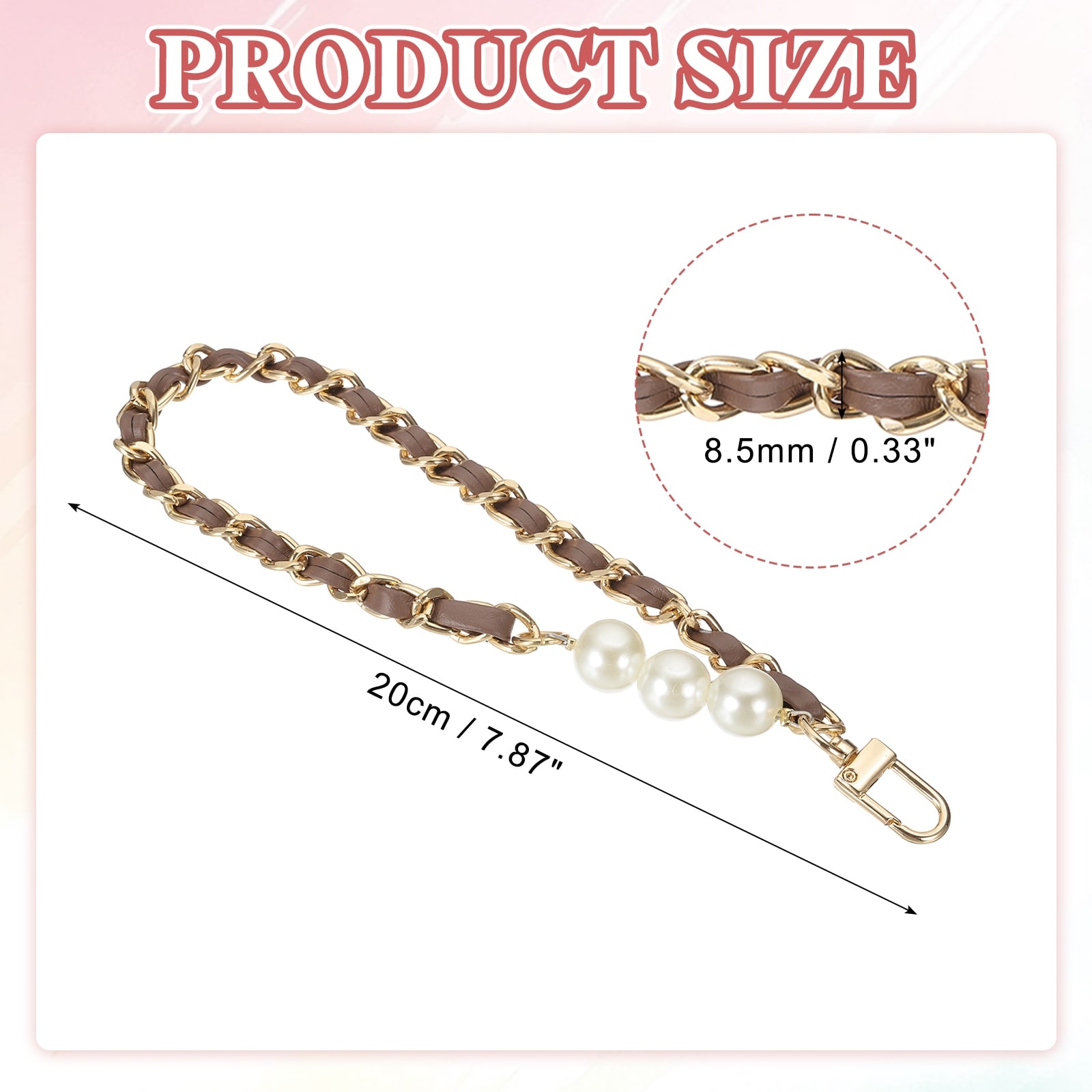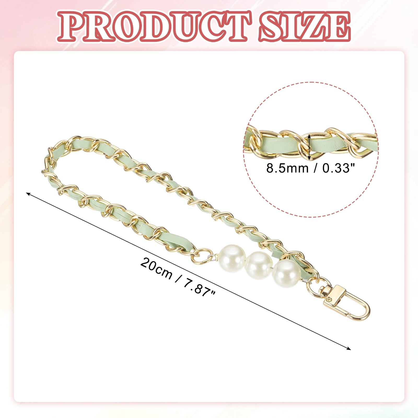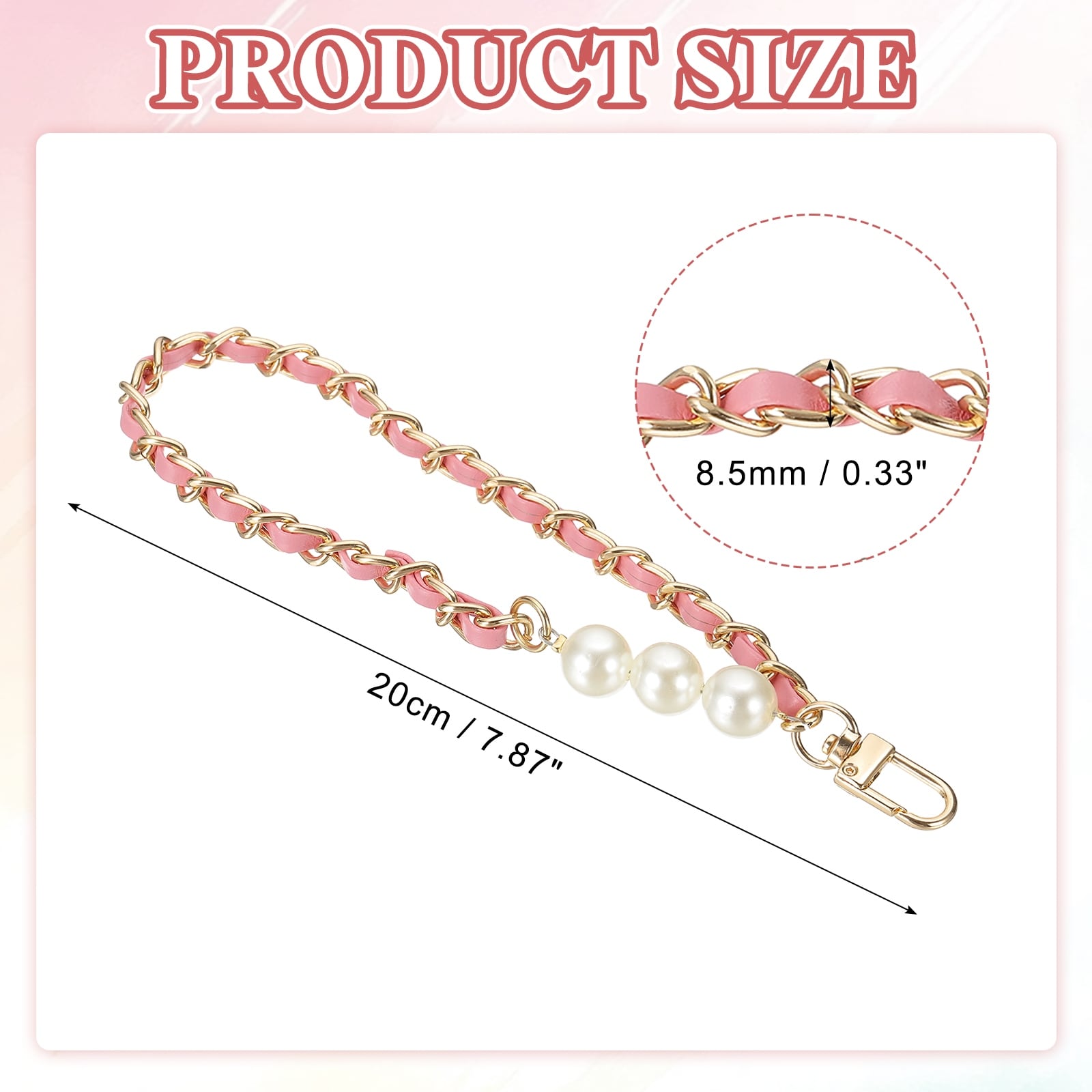 8" Chain Wristlet Strap Pearl Leather Chain Wrist Strap with Buckle Gold-Black