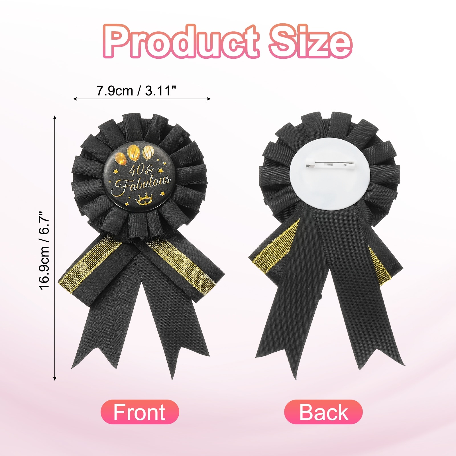 Birthday Ribbon, Satin Fabric Tinplate Badge Pin Birthday Badge Pin for Women Brooch Gifts Party Decoration - Black