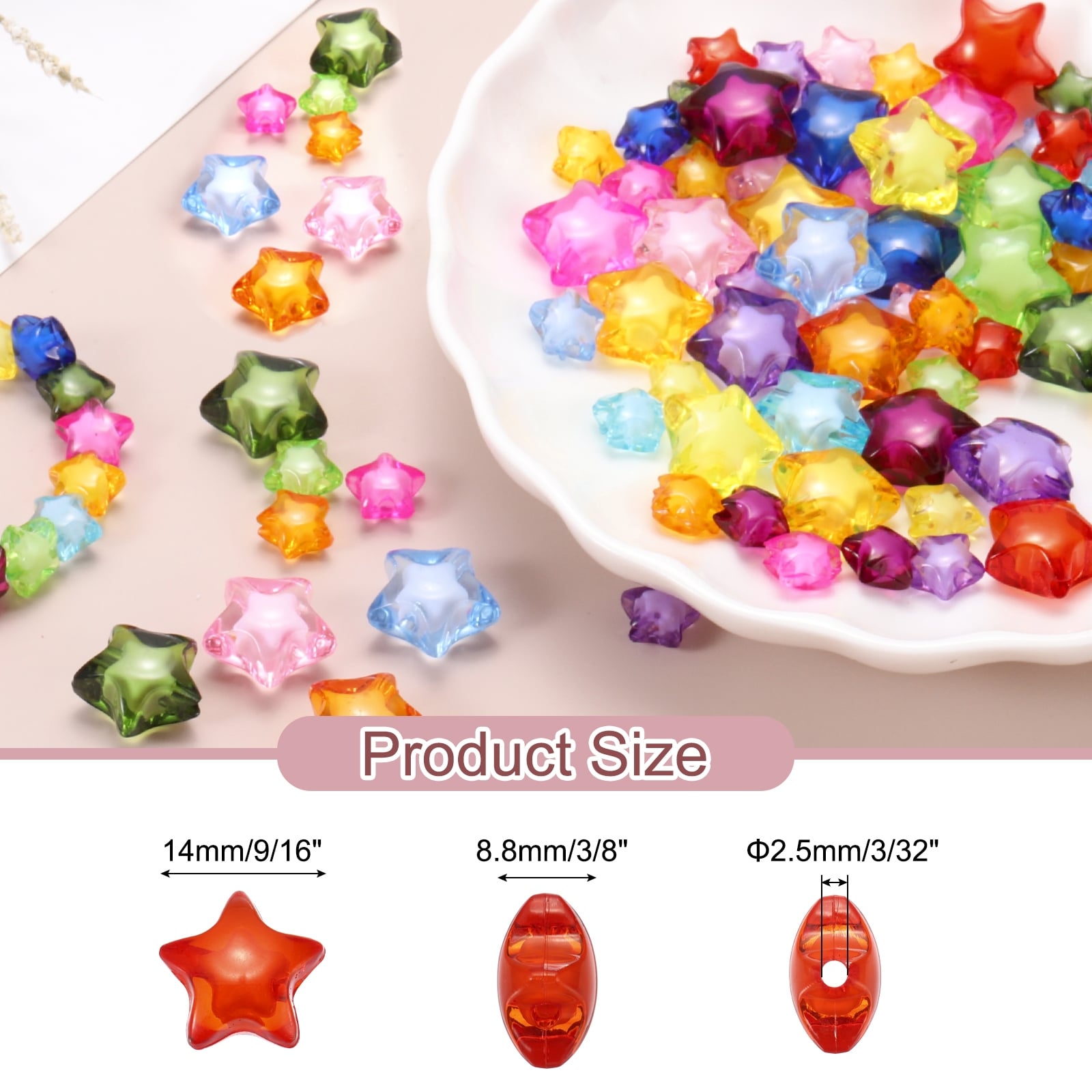 100pcs Acrylic Star Beads, Star-Shaped Pony Loose Spacer Beads