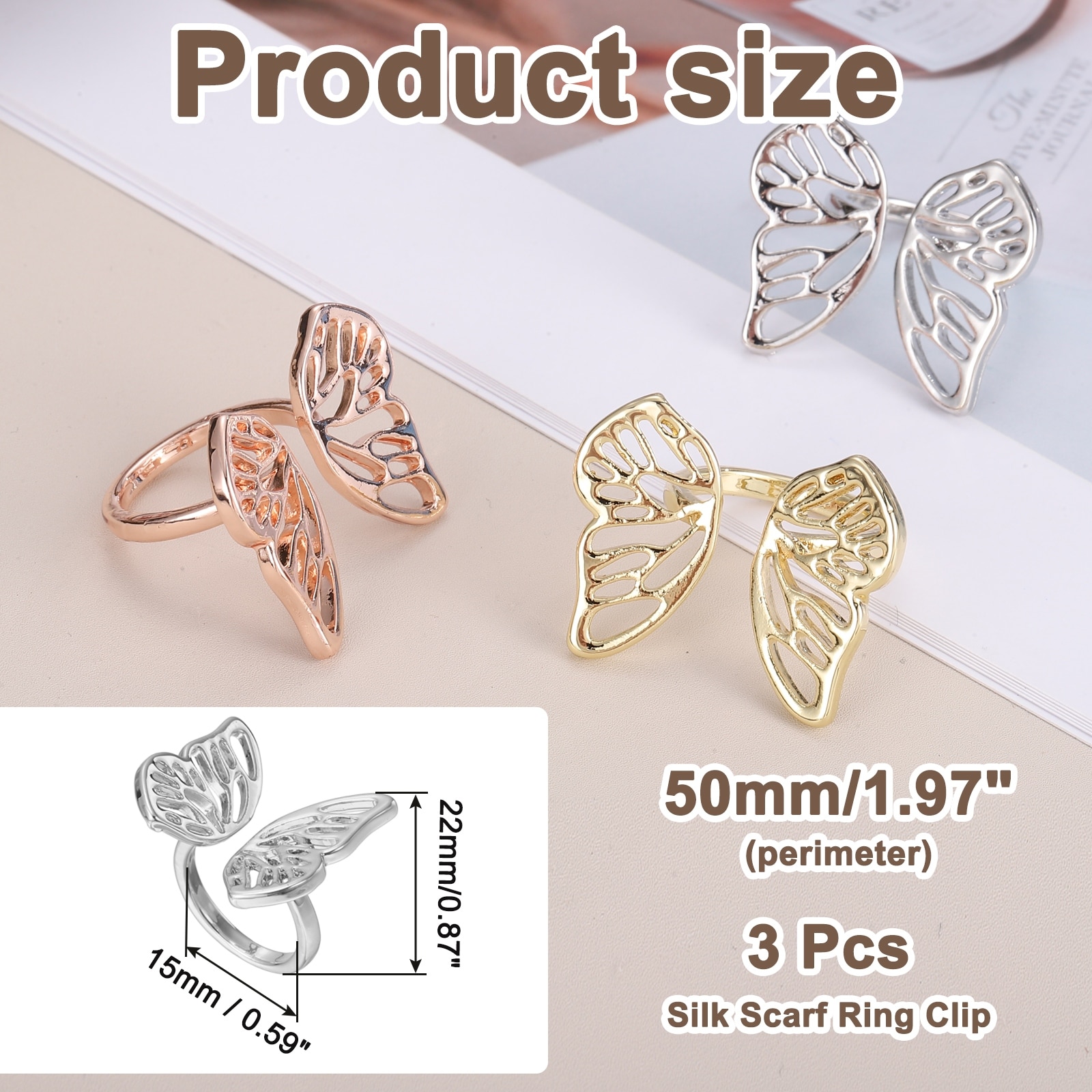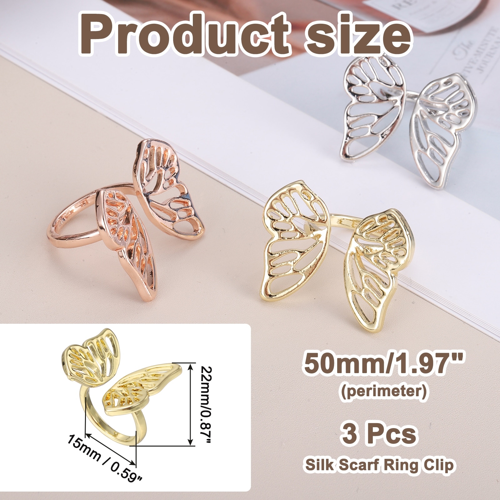 Silk Scarf Ring Clip, 3Pcs Butterfly Scarves Pin, Gold Tone