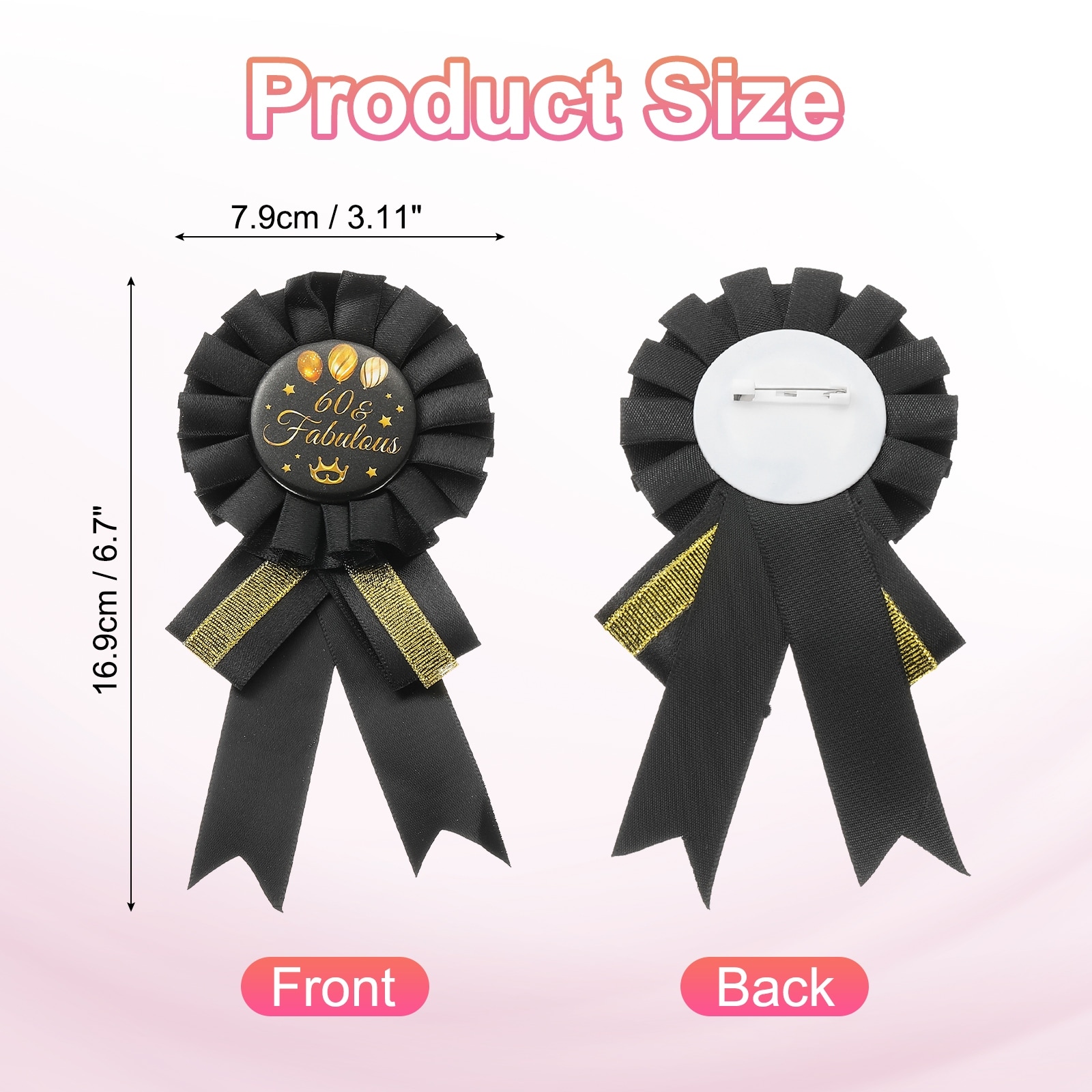 Birthday Ribbon, Satin Fabric Tinplate Badge Pin Birthday Badge Pin for Women Brooch Gifts Party Decoration - Black