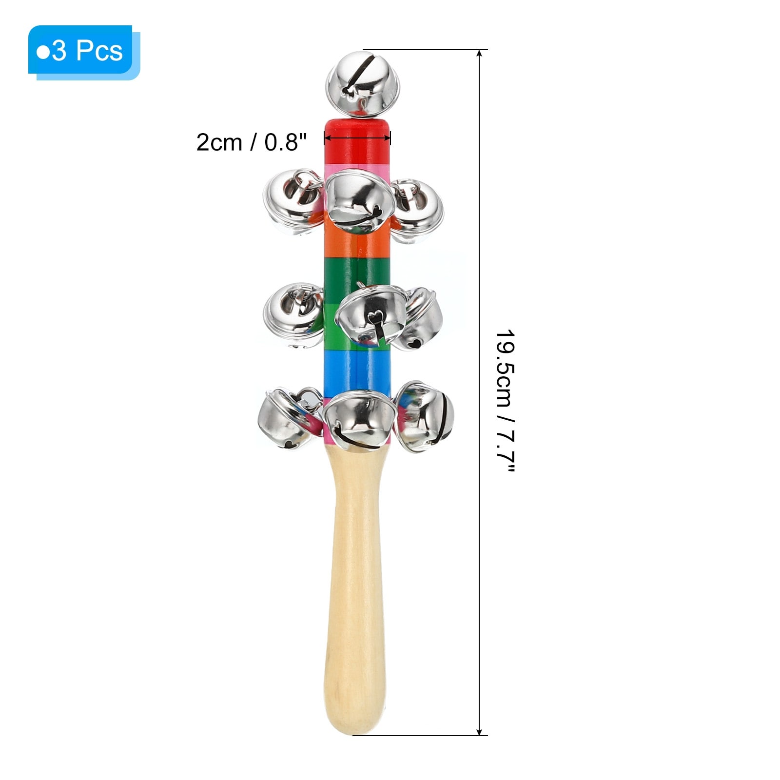 Jingle Bells, Hand Bell Handheld Wrist Bells Wooden Hand Percussion Instruments Musical with 10 Bell for Music Class - Colorful