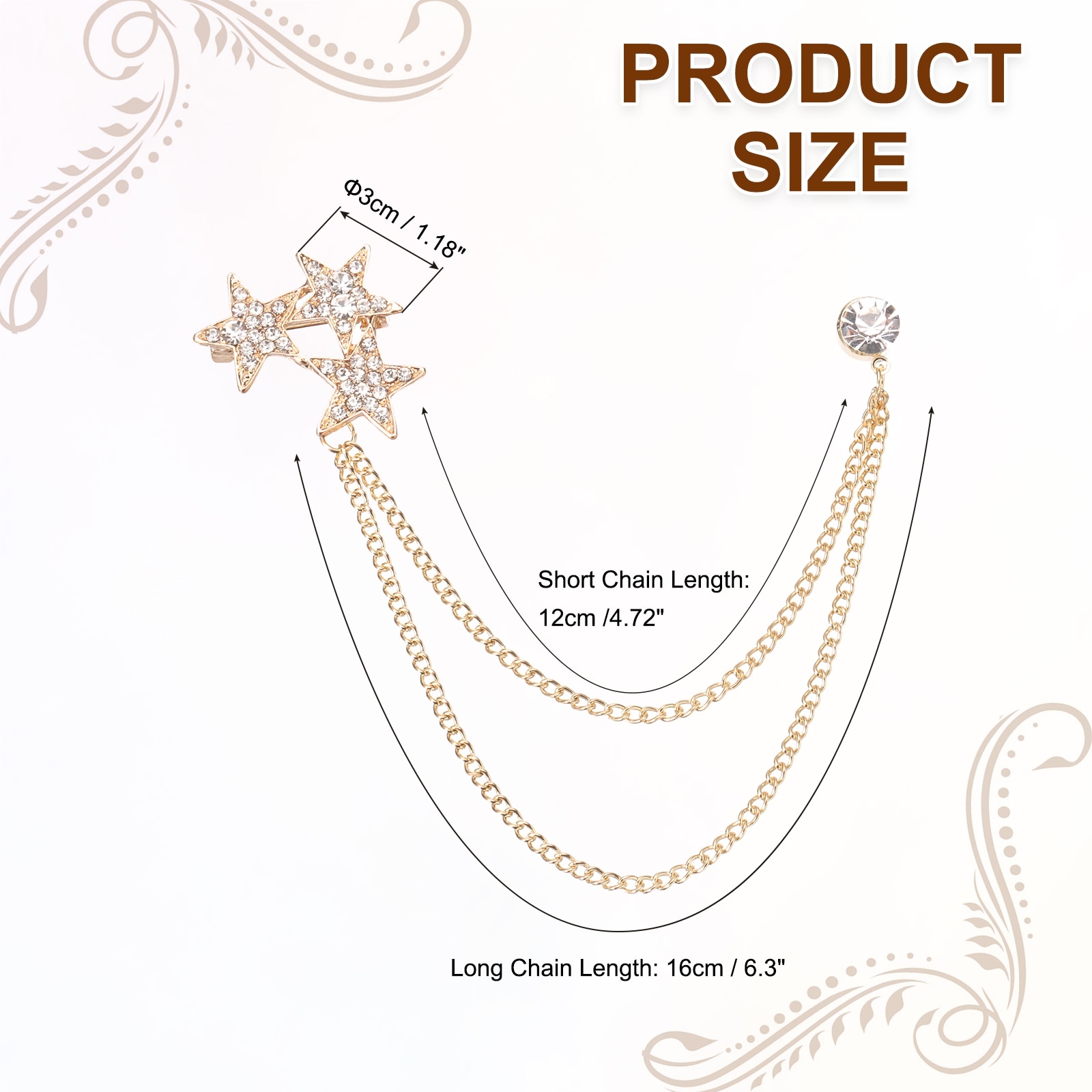 Star Chain Brooch Pins, Shiny Star Tassel Chain Hanging Fashion Crystal Lapel Suit Pins - 6.2cm