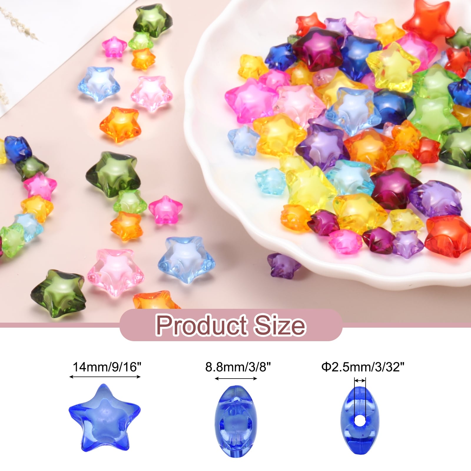 100pcs Acrylic Star Beads, Star-Shaped Pony Loose Spacer Beads