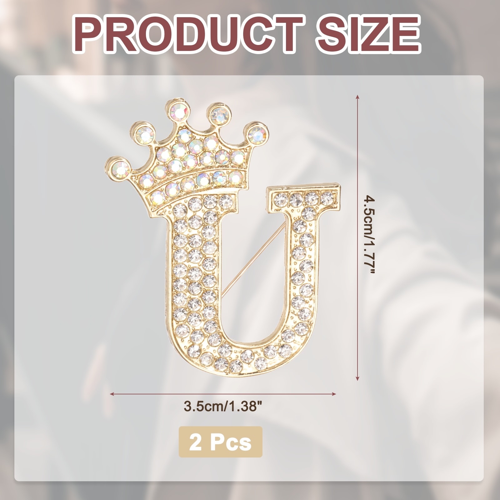 Letter Brooch Pins, Crown Initial Rhinestone Letter Lapel Badges Pin for Women Suits Dress Coat Clothes Craft - Gold Tone