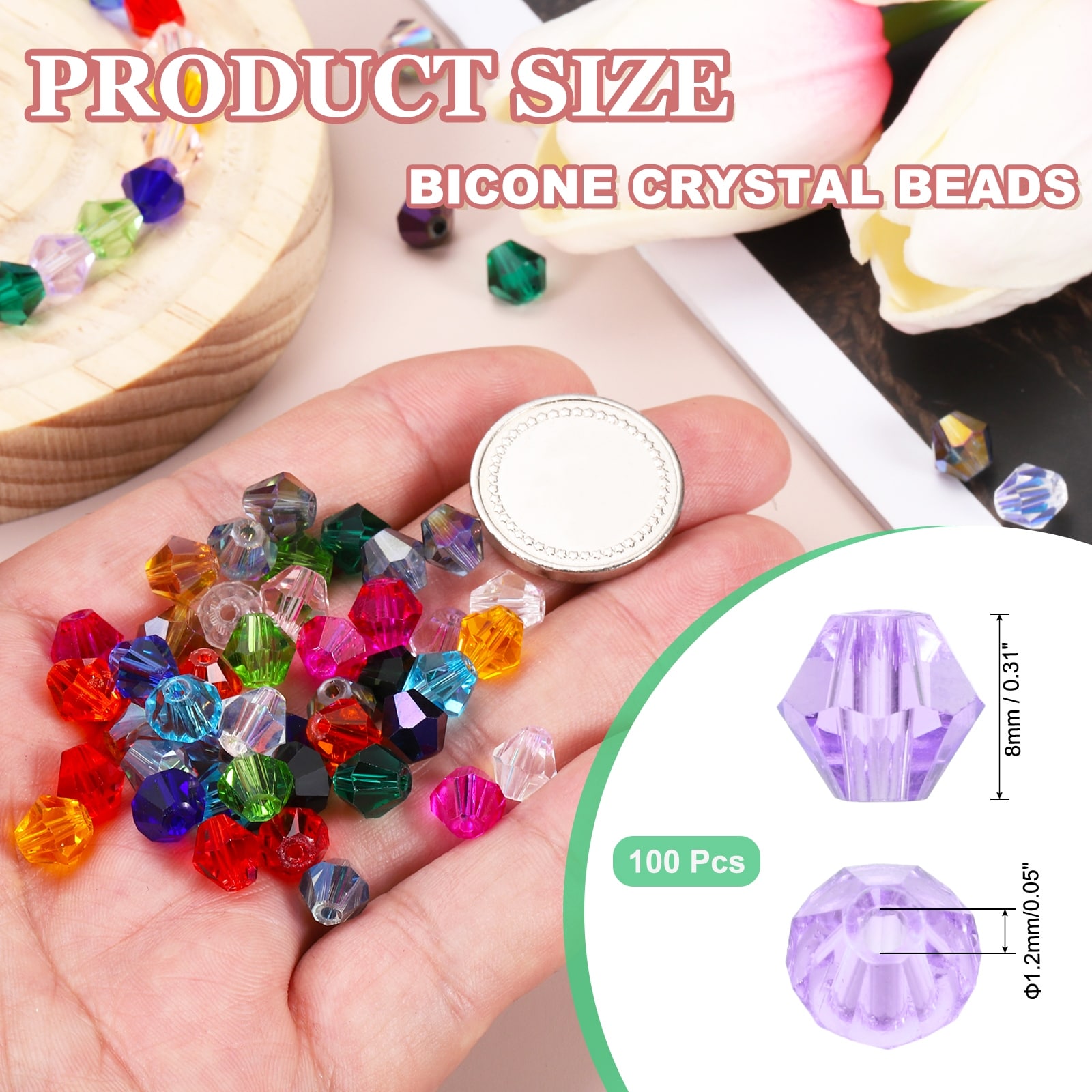 Bicone Glass Crystal Beads, Faceted Beads with Box - 8mm