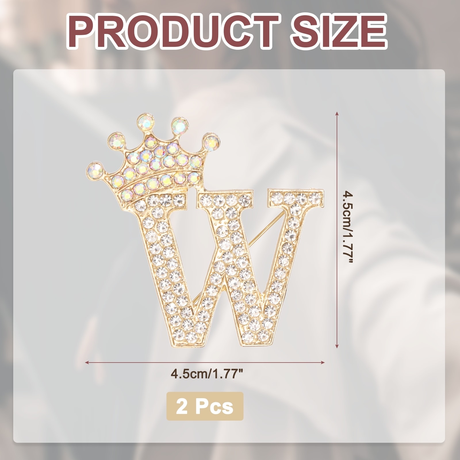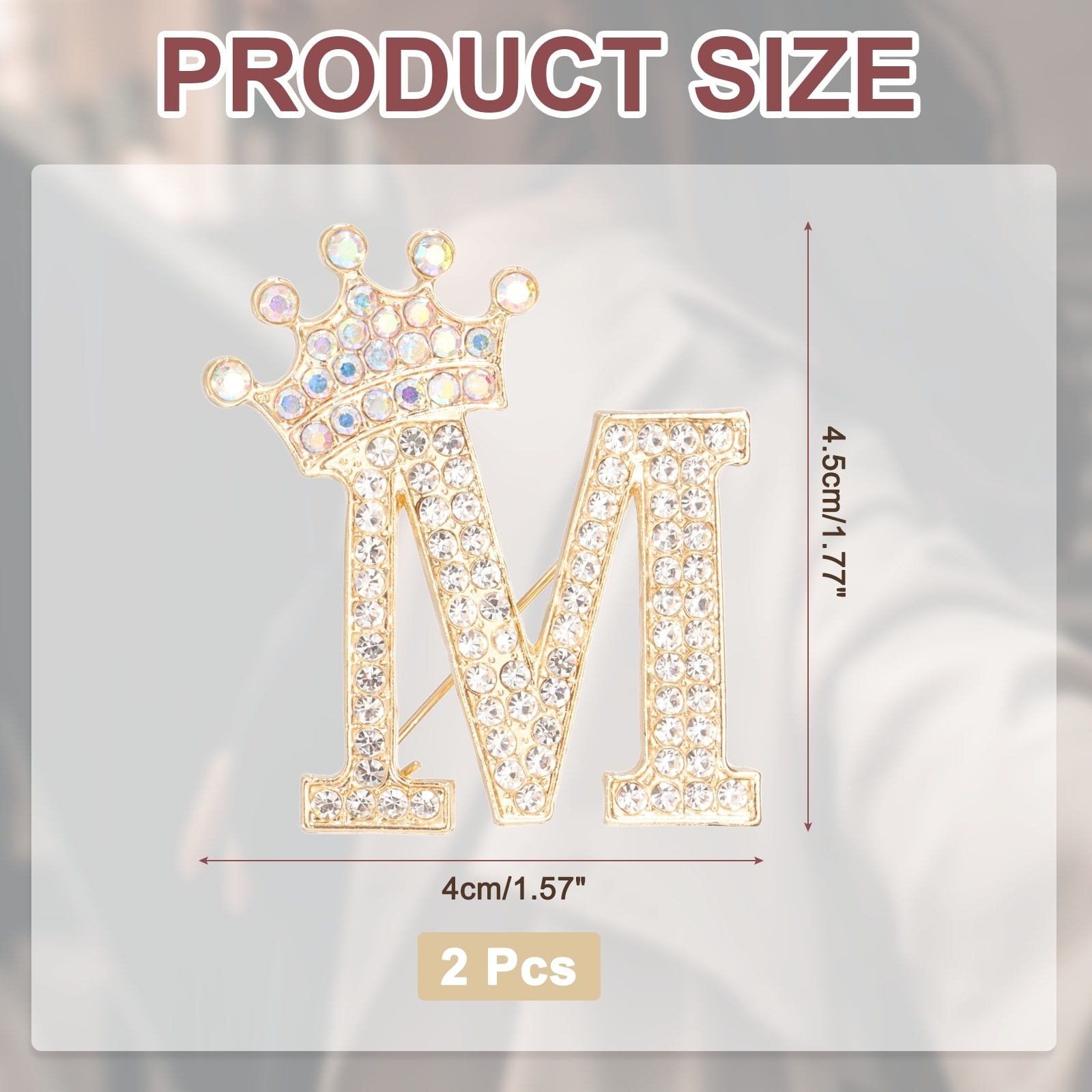 Letter Brooch Pins, Crown Initial Rhinestone Letter Lapel Badges Pin for Women Suits Dress Coat Clothes Craft - Gold Tone