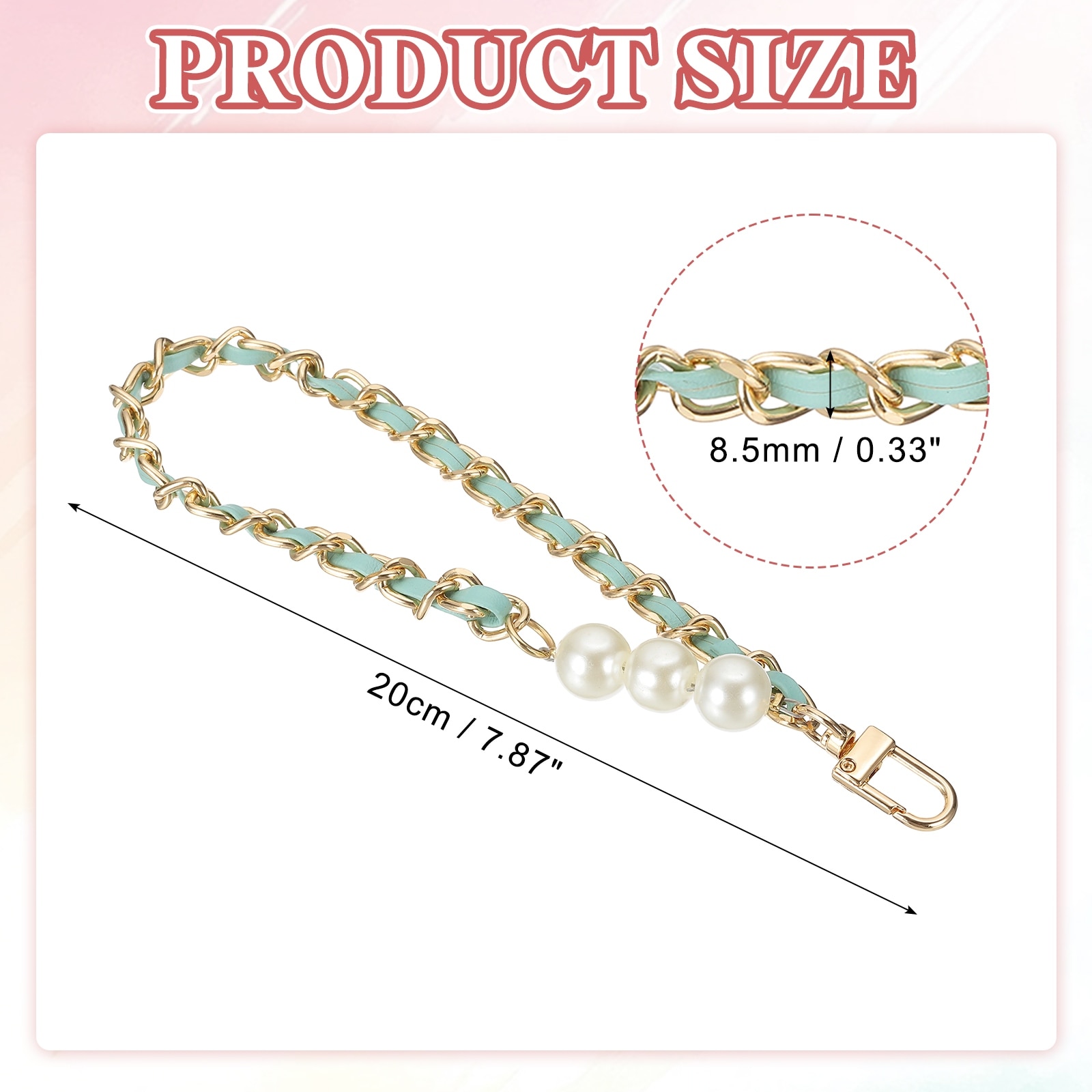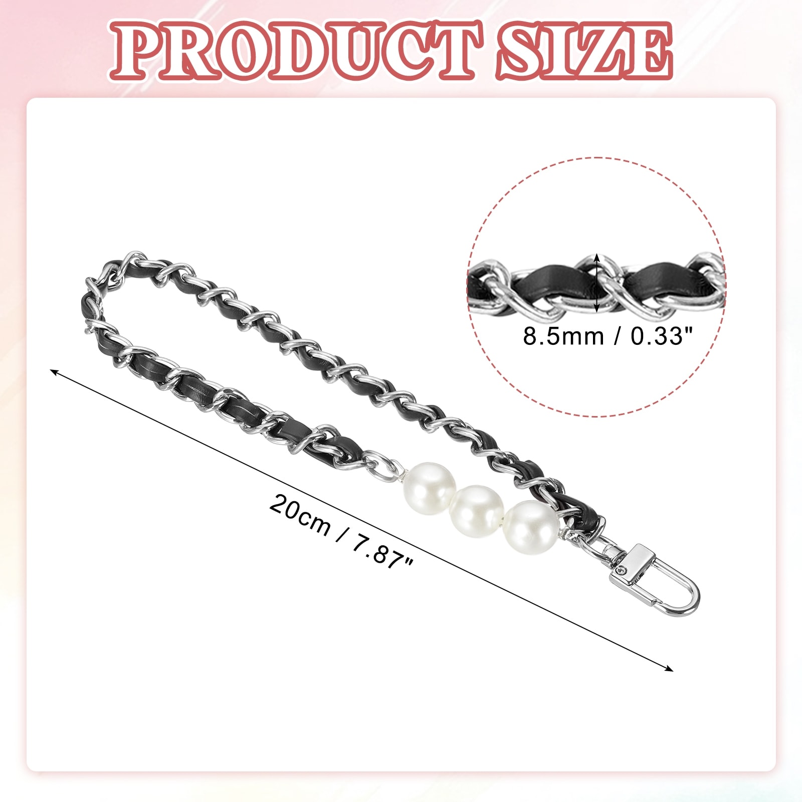 8" Chain Wristlet Strap Pearl Leather Chain Wrist Strap with Buckle Gold-Black
