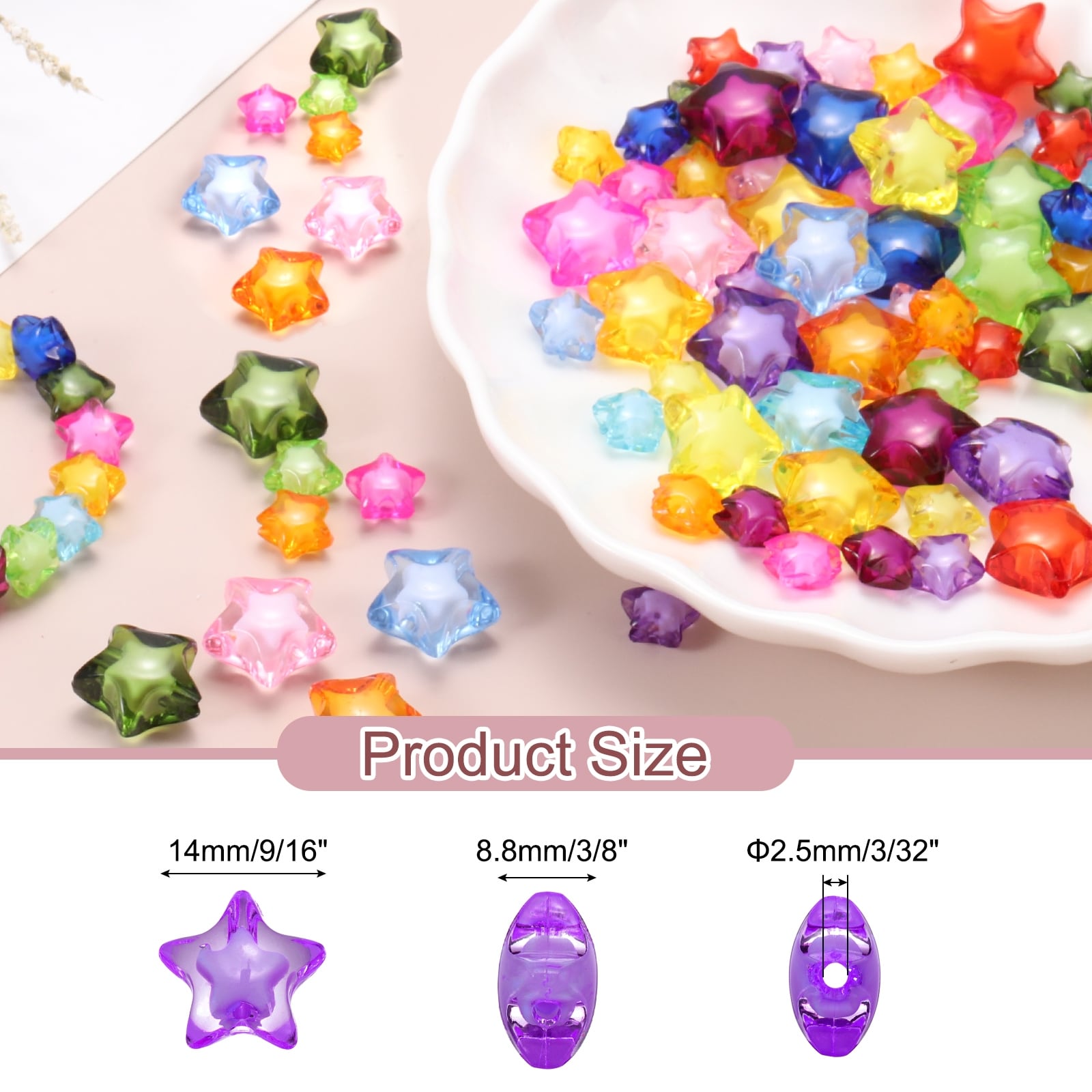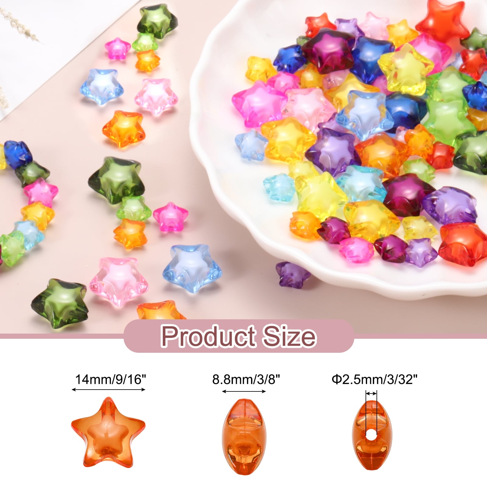 100pcs Acrylic Star Beads, Star-Shaped Pony Loose Spacer Beads
