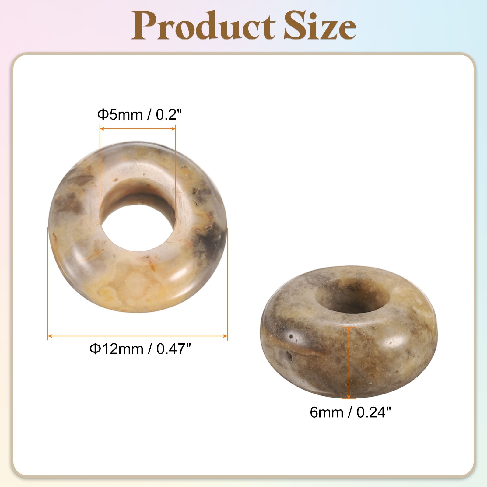 Large Hole Stone Beads Flat Round Smooth Large Hole Loose Beads for Bracelet Necklace Crafts - 0.31" x 0.55"
