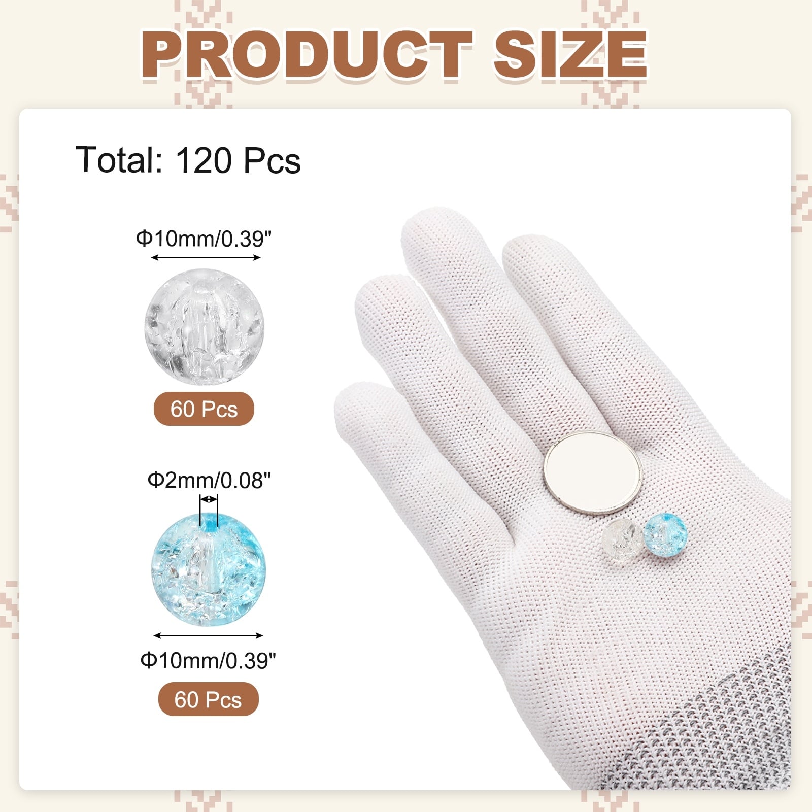 Crackle Glass Beads, Crystal Round Spacer Loose Bulk Crafts Beads for DIY Jewelry Making Handmade Bracelets Necklace
